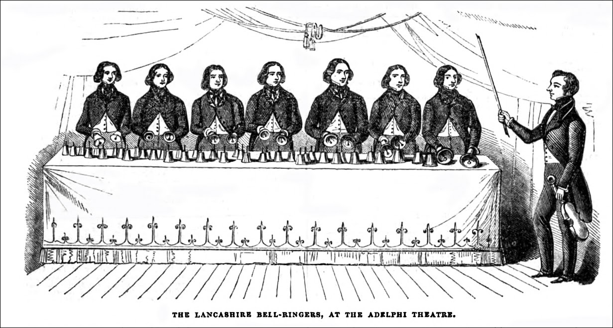 Christmas is a time for good cheer, festive gatherings, and seasonal entertainment treats: and what better Christmas treat could you imagine than a concert by the Lancashire Bell Ringers! This is the prospect that was on offer to the citizens of Halifax back in 1843, when “lovers of music and novelty” were “earnestly solicited to pay a visit and spare themselves regret which the must otherwise experience”, to the Theatre in Halifax to see this “musical entertainment of a strictly moral nature”. “The Theatre” – it needed no other name, it was the only one in Halifax at the time – stood on the spot where the Theatre Royal was later built.