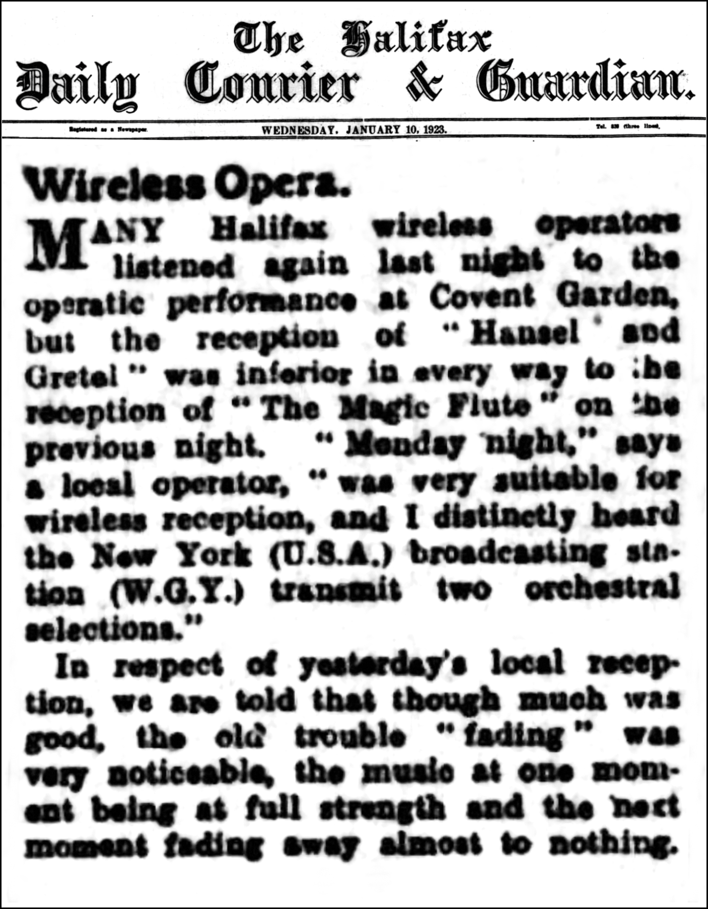 I was flicking through the TV channels the other day, wondering whether to watch a concert from Australia, a quiz show from America or a cricket match from India, when I started getting bored with it all and reading an old newspaper instead. The newspaper was from one hundred years ago (Halifax Courier, Wednesday 10 January 1923) and a short article caught my attention and reminded me just how much has changed in 100 years. We may have just celebrated the centenary of the BBC, but back in 1923, listing to the radio (or as we used to call it the wireless) was still a technologically challenging occupation. One Halifax wireless enthusiast had actually managed to hear a concert broadcast from New York on the Monday, whilst “Hansel and Gretel” broadcast from Covent Garden on Tuesday was spoilt by “the old trouble of fading”. I have to say, however, with some of the things on offer on our multi-channel entertainment platforms of 100 years later, a little “fading” wouldn’t be a bad thing!