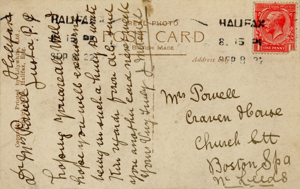 The card was sent in September 1922 by J Mitchill to Mrs Powell, Craven House, Church Street, Boston Spa, Nr Leeds. The message reads as follows: “Dear Mrs Powell, Just a P.C. hoping you are all well. Excuse me being in such a hurry to write this. Regards from A.C. Send you another card next week. Yours very truly, J Mitchill” There is a degree of formality about the language used in the message which might lead us to question the degree of familiarity between the sender and the recipient of the card. They may not have been lifelong friends, but that is a claim I feel I can make about this lovely “little stream”, whatever you choose to call it.