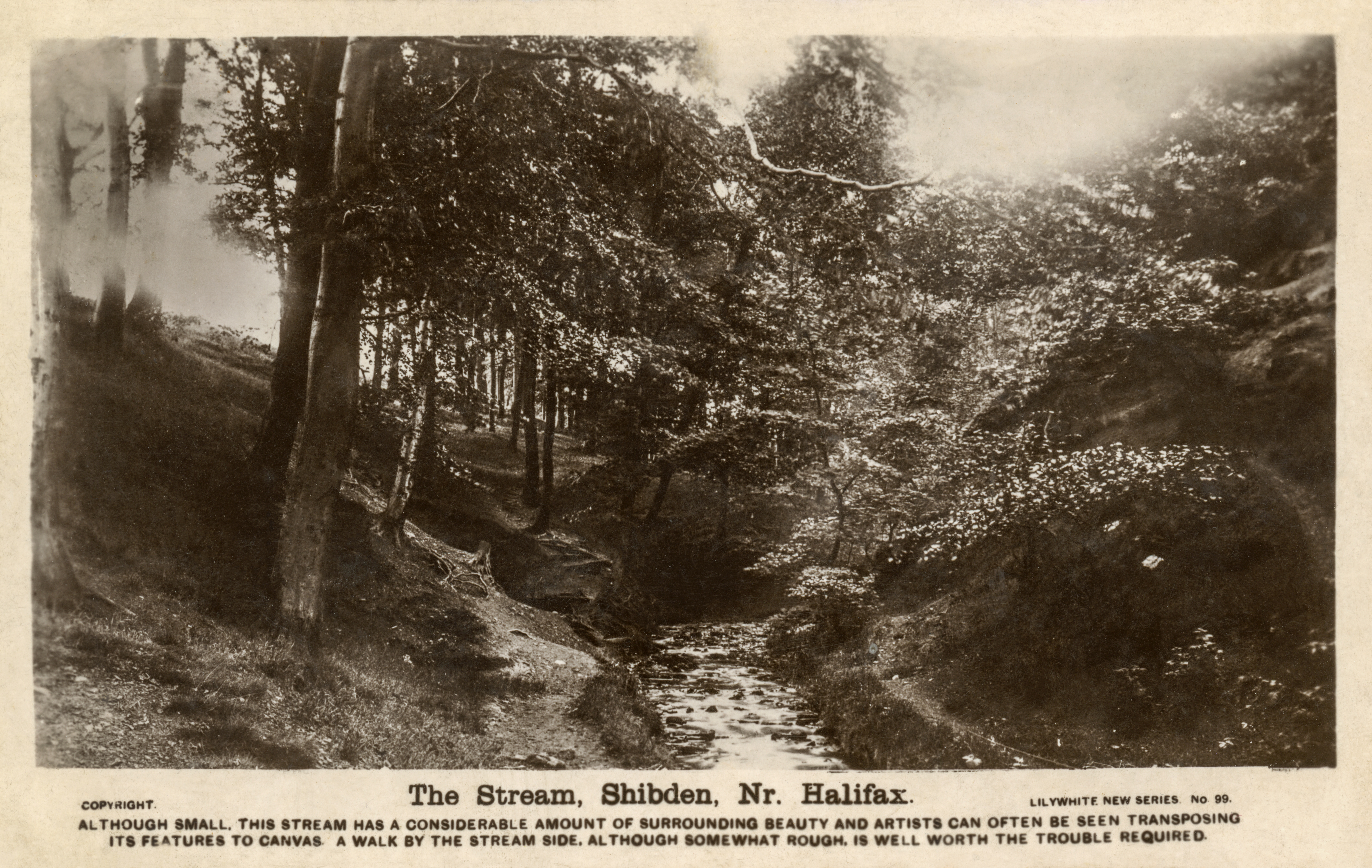 When I was a kid, my friends and I would play alongside its banks as it made its way through Shibden Park. Later, I would walk along its banks as both it and I would pay a visit to the Shibden Mill Inn. Later still I would walk my dog on the lanes that ran alongside its lower stretches in Walterclough Valley. I must confess, in all the years I have known the stream, I have yet to see any artist transpose its features to canvas – although I strongly suspect I will receive an e-mail within the next few days from my brother in Dominica, to tell me he has done so several times!
