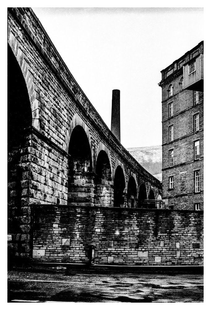 To mess, or not to mess, that is the question. Whichever one you choose, it shows the railway viaduct, part of the Bailey Hall factory of Mackintosh’s, and a mill chimney (Clark Bridge Mills, perhaps) with a relatively bare Beacon Hill filling in the gaps between the blackened stone. It is Halifax, of course, and I have guessed the date as being 1974, but you might want to allow me a margin of error of plus or minus five years on that. As soon as I saw this image amongst my old negative archives, I couldn’t get Ewen McColl’s song, Dirty Old Town, out of my mind. I used to meet my love by the gas works wall down there. And there is many an occasion I have seen a train set the night on fire as it has crossed that viaduct.