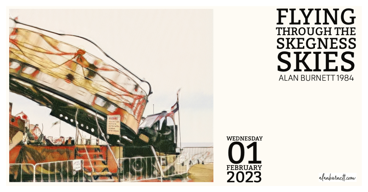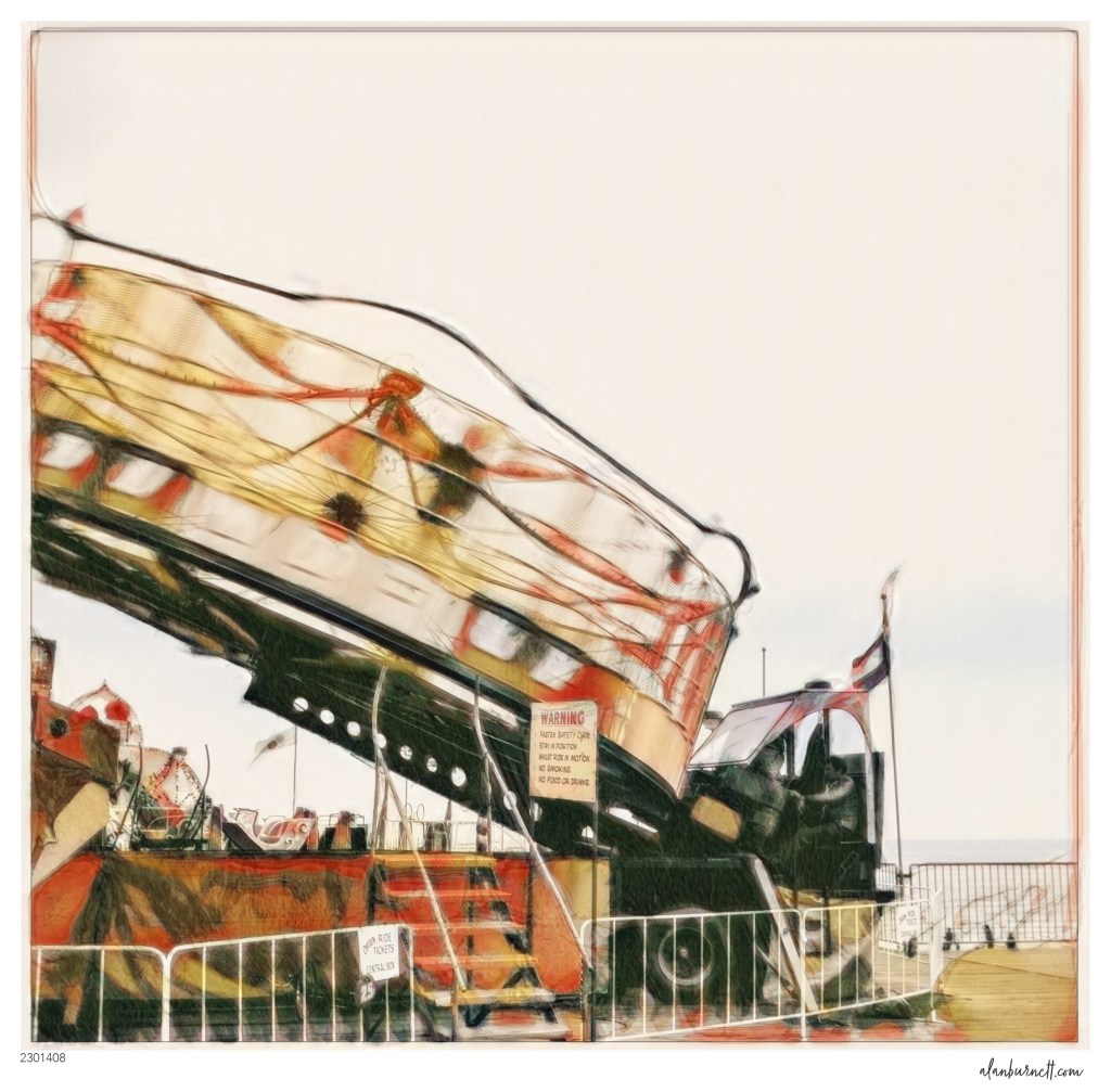 This strange contraption perhaps gives a new meaning to the phrase “fell off the back of a wagon”! The wagon was “on the front” at Skegness, more years ago than I care to remember. It was always a blurred picture, it was always slightly unreal. The only thing to do with it was to make it even more unreal.