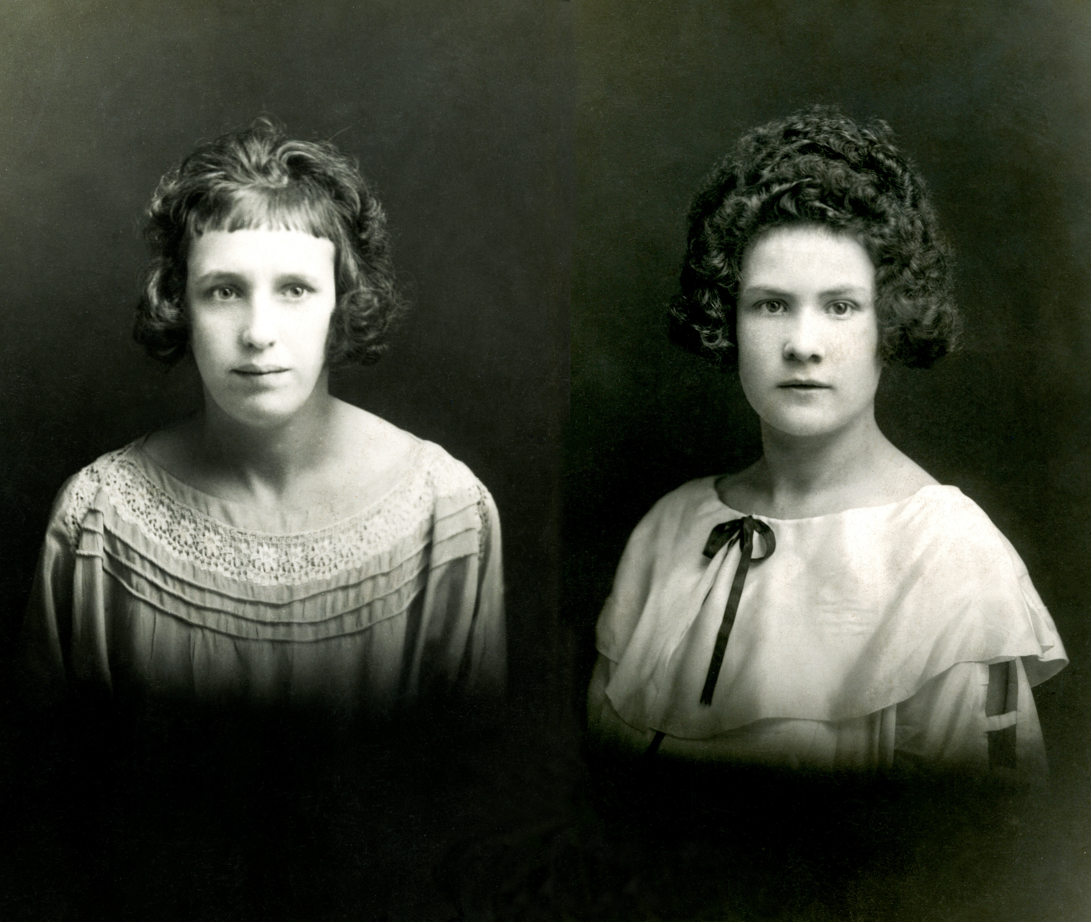 The girl on the left is Effie (“from Effie with love xxxxx”) and the one on the right is Agnes (“With best wishes, Agnes”). As soon as I saw the two postcard prints, I wanted to merge them together, to reunite them. So here they are, after the best part of a century – Effie and Agnes reunited.