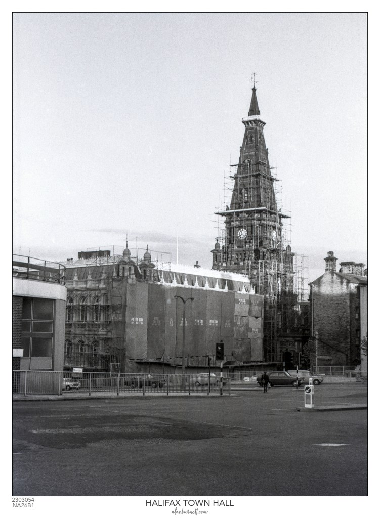 In dating pictures of old Halifax, there are certain events that – rather like the destruction of the dinosaurs in geological times – mark the changeover between major epochs. One such event was the stone cleaning of Halifax Town Hall, bringing about its transition from soot-black to golden-stone, in 1972.