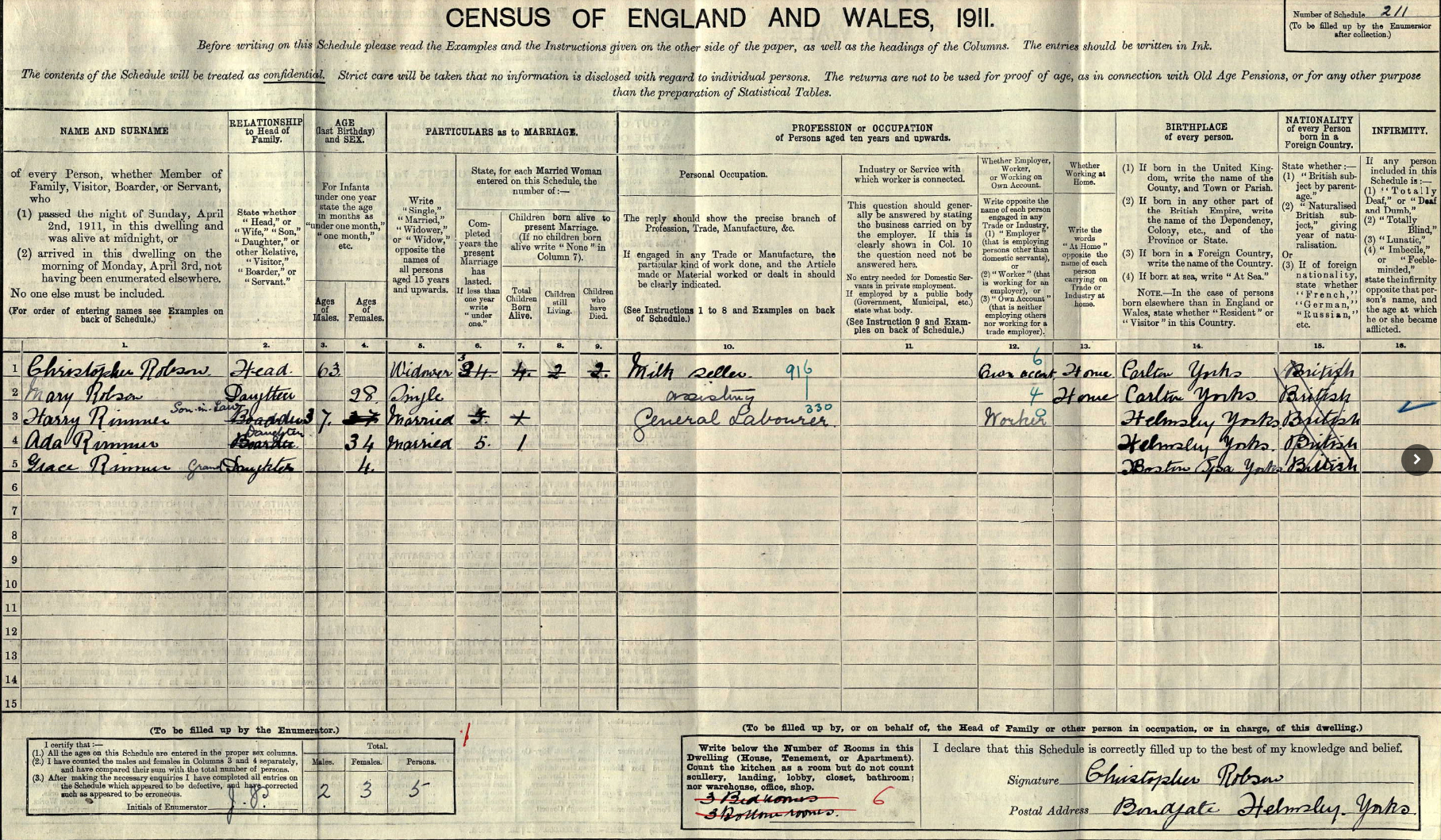 Christopher and Mary Ralson are easily traceable via the 1901 census – although it appears that Mr Ralson was a milk seller rather than a tailor – when they were living on Bondgate with their two daughters Mary and Ada. But by the time of the 1911 census (a few months after this card was sent), Mr Ralson is listed as a widower, and Mary is gone. So, a little late in the day, we can now write back to Daley with the simple message: “not”.