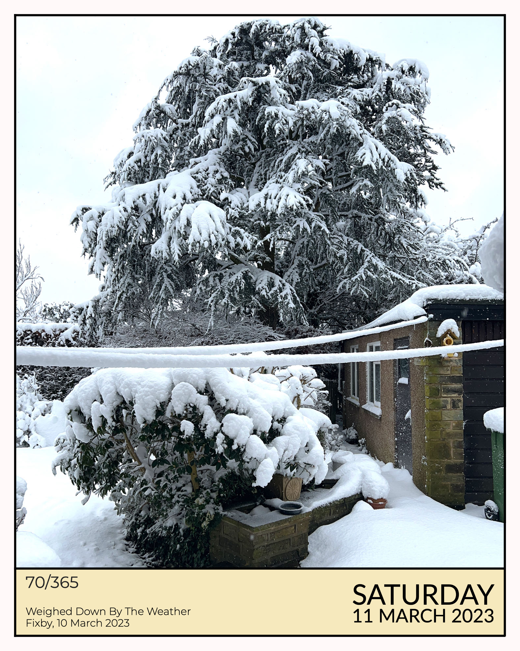 Weighed Down By The Weather: Occasionally the weather likes to remind you that, whatever plans you have, whatever places you need to go, it can over-rule the lot. It might be March but the snow fell with a vengeance and coated the ground, the trees, and even the washing line.