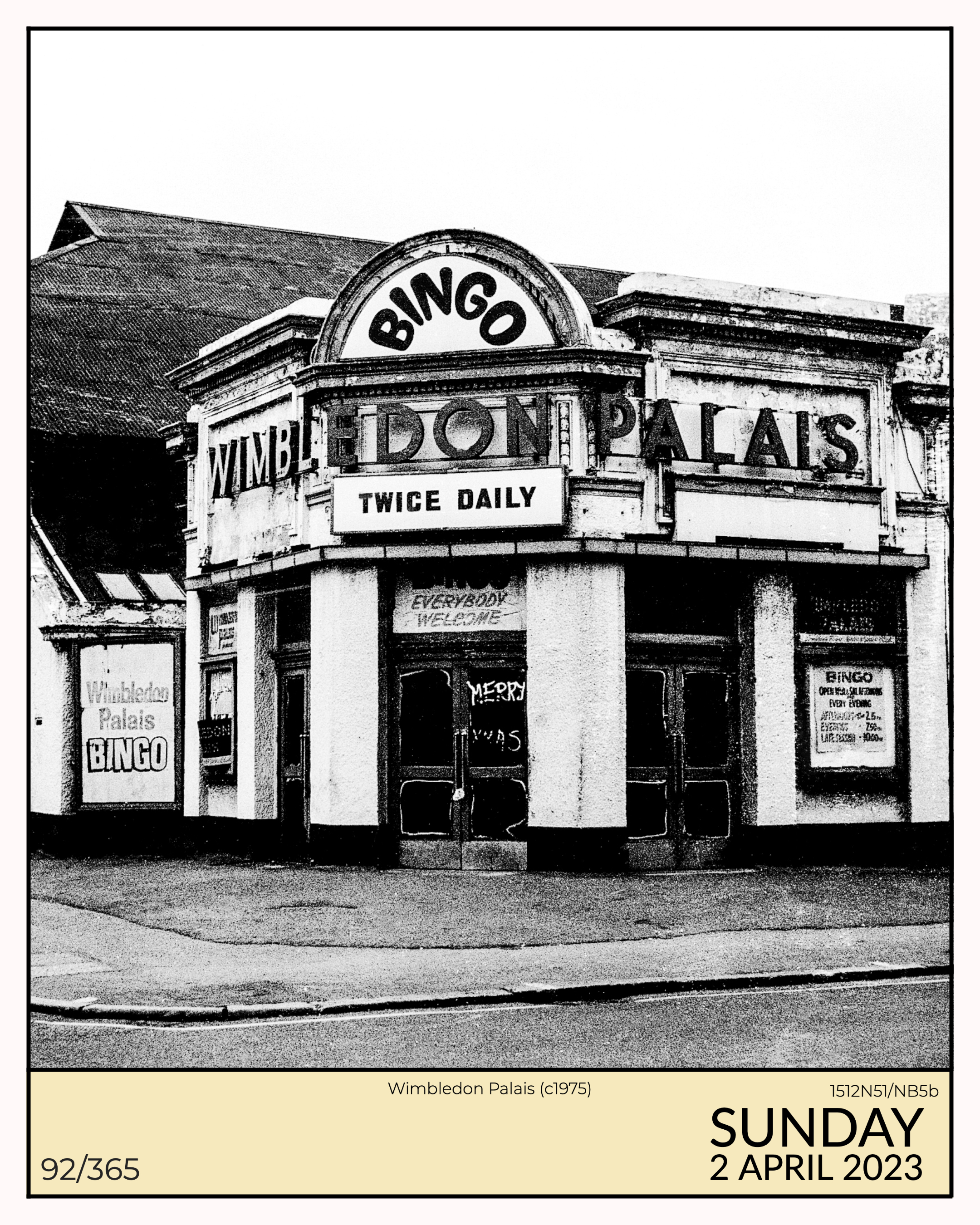 I must have taken this photograph of Wimbledon Palais in the 1970s. By then it was in terminal decline, and moving through the end stages of life of all great venues : from bingo hall to furniture store to builders’ rubble. Forty years earlier it had attracted dancers from all over London with the largest sprung dance floor in Europe. Even ten years before this photograph, the likes of the Beatles, the Stones and the Who had graced its stage. In this photograph it is like an old trouper begging for coins on a street corner.