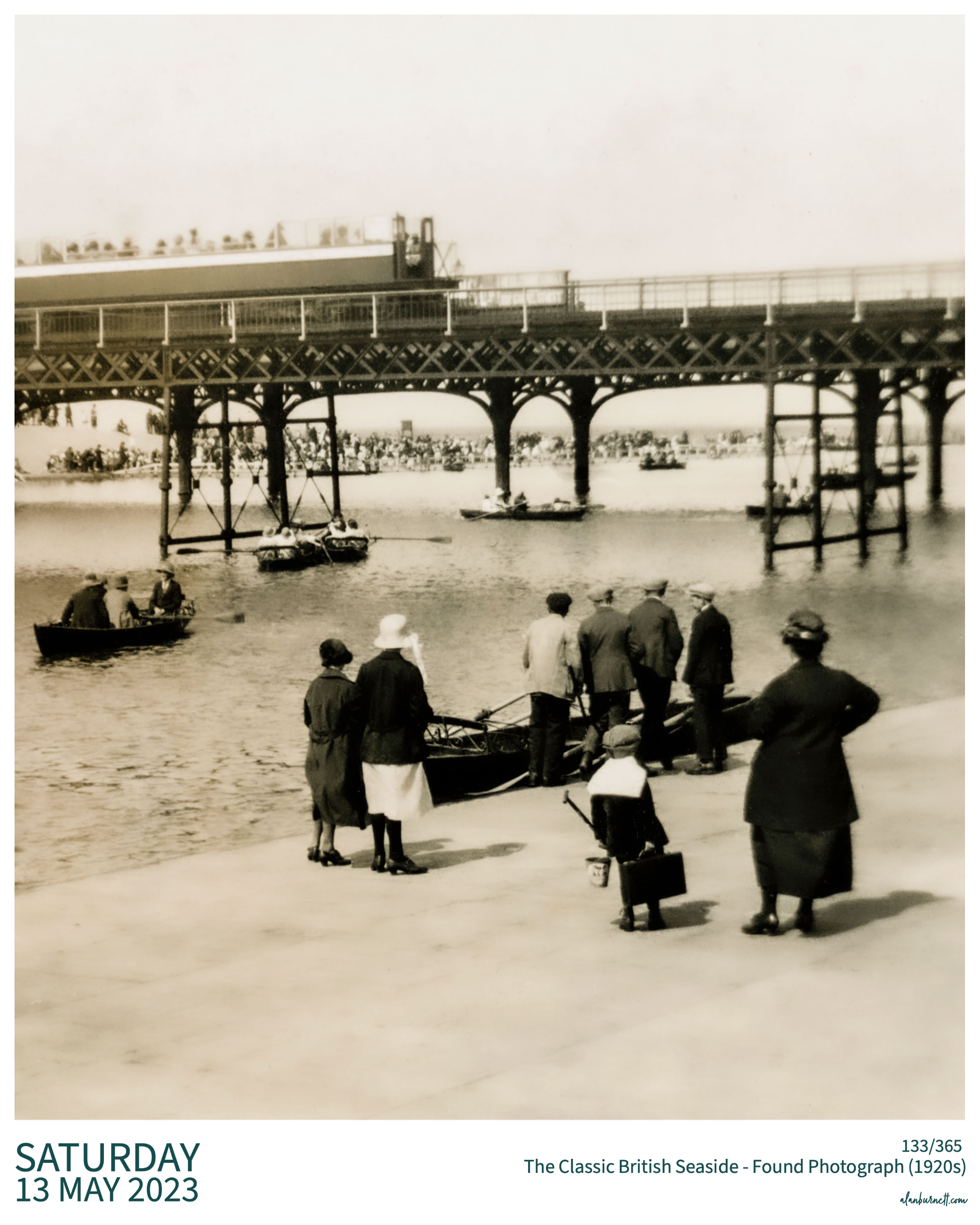 I acquired this old print from somewhere or other. I don’t know who took the original photo, when they did so, or where it was. At a guess I would say somewhere in Britain in the 1920s. It’s such a wonderful composition – a scene that shouts out the classic British Seaside.