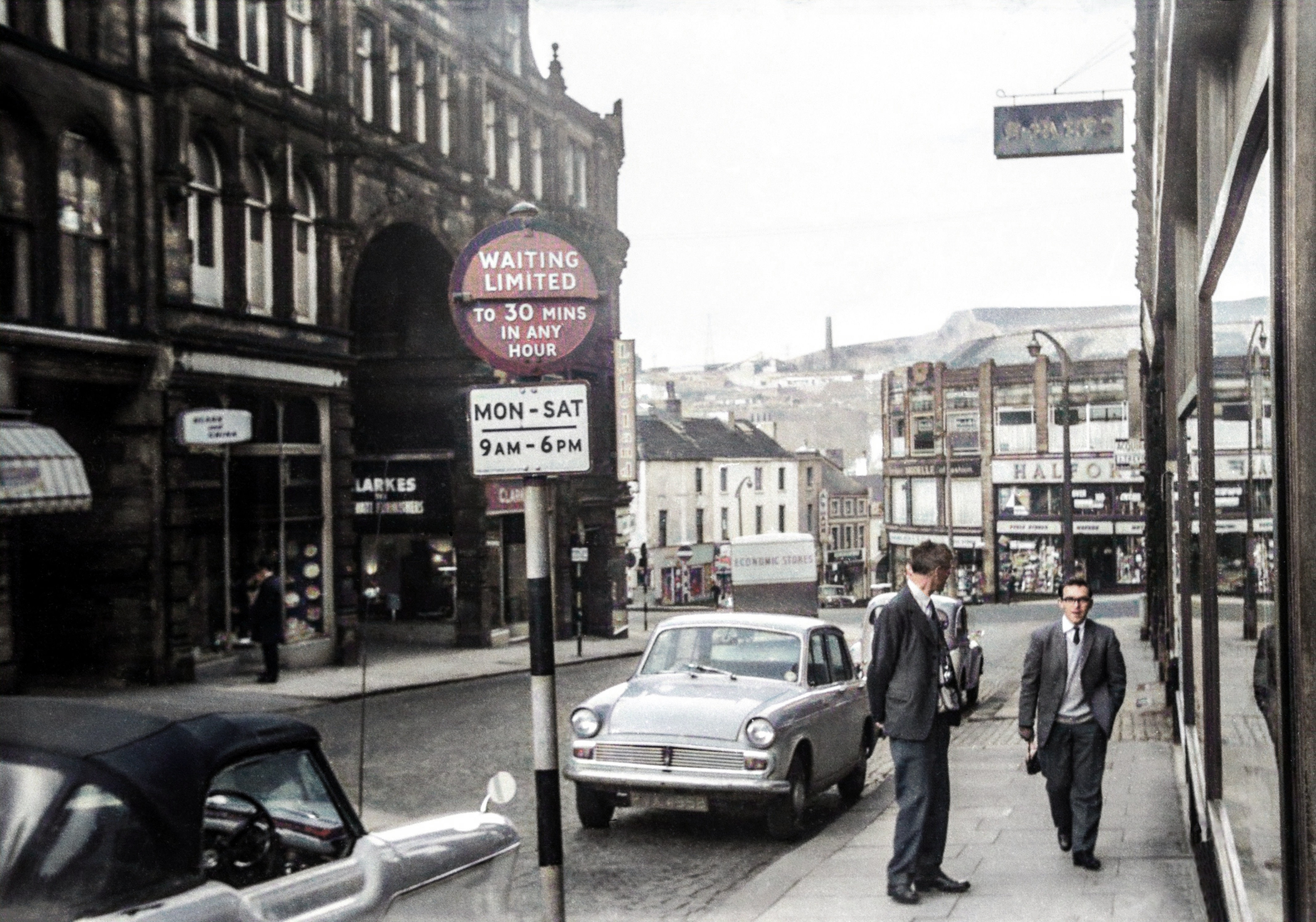 As I scan my way through a strip of old negatives, I am constantly amending decisions I have made about when and where some of the photographs were taken. Many of these negatives are over fifty years old, and over the years they have gathered their own collection of scratches, dust spots and blemishes. I like to spend some time trying to restore the images to something like what they were when I took them all those years ago; and that restoration process means you get up and close to the enlarged image, and in so doing, discover details you might never have noticed before. In some way it is like walking down a street again – in this case Russel Street, Halifax – and reacquainting yourself with the shop names, the street furniture and the car models.
