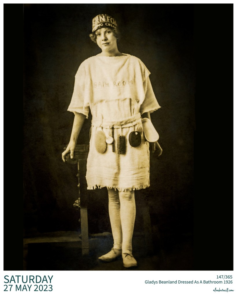 Son Of A Bathroom My mother, Gladys Beanland, in 1926, aged 15. She attended a fancy dress party as “A Bathroom”!. I don’t know whether she won a prize or not, but she should have. Share this: Click to share on X (Opens in new window) X Click to share on Facebook (Opens in new window) Facebook Click to share on Tumblr (Opens in new window) Tumblr Click to share on Pinterest (Opens in new window) Pinterest Click to print (Opens in new window) Print Click to share on Pocket (Opens in new window) Pocket Click to email a link to a friend (Opens in new window) Email More Click to share on WhatsApp (Opens in new window) WhatsApp Like Loading... Related