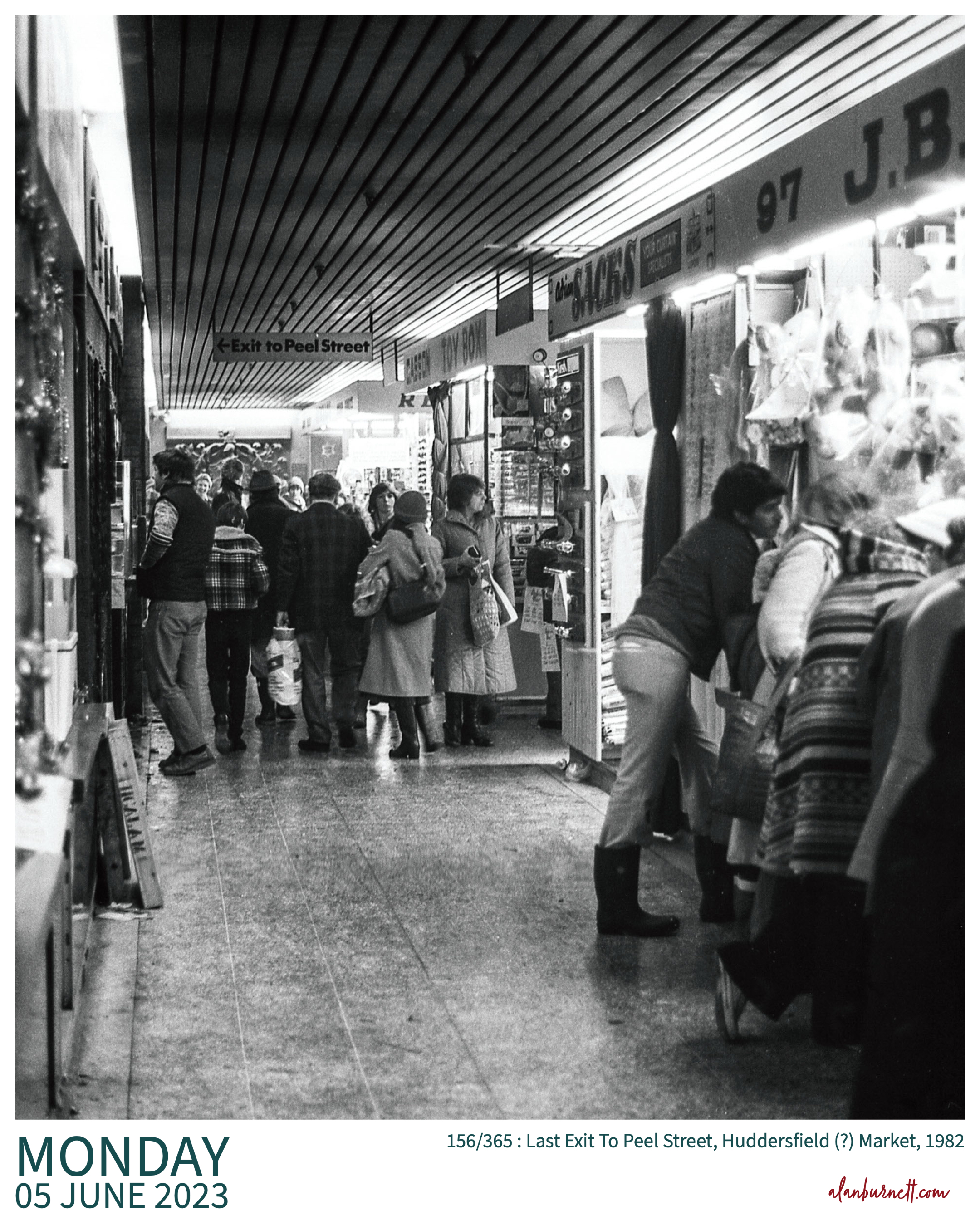 I suspect that I took this photograph in Queensgate Market, Huddersfield (it’s the only market with an adjacent Peel Street I can think of). The date will have been somewhere in the range 1980-82.