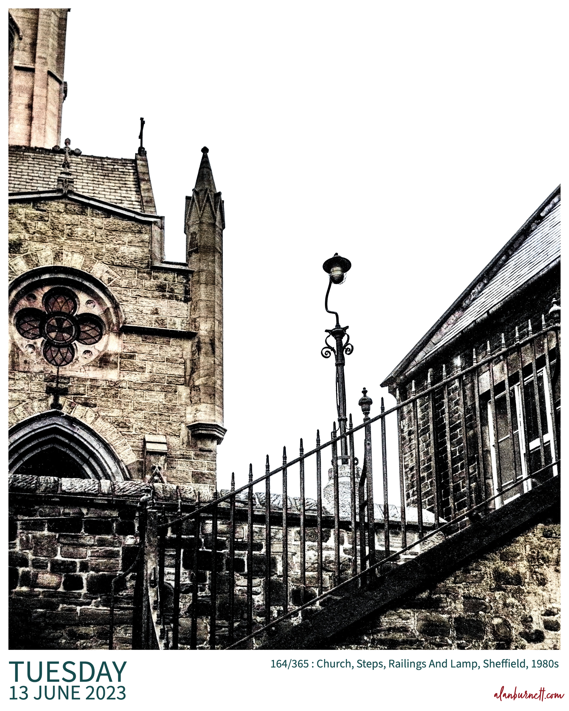 Like some monumental sculpture, this collection has been assembled. Perhaps the steps leading up to the Church where the light can be seen. Or maybe the lamp lighting the way to the steps of reason. Or maybe a quiet corner of Sheffield 40 years ago.