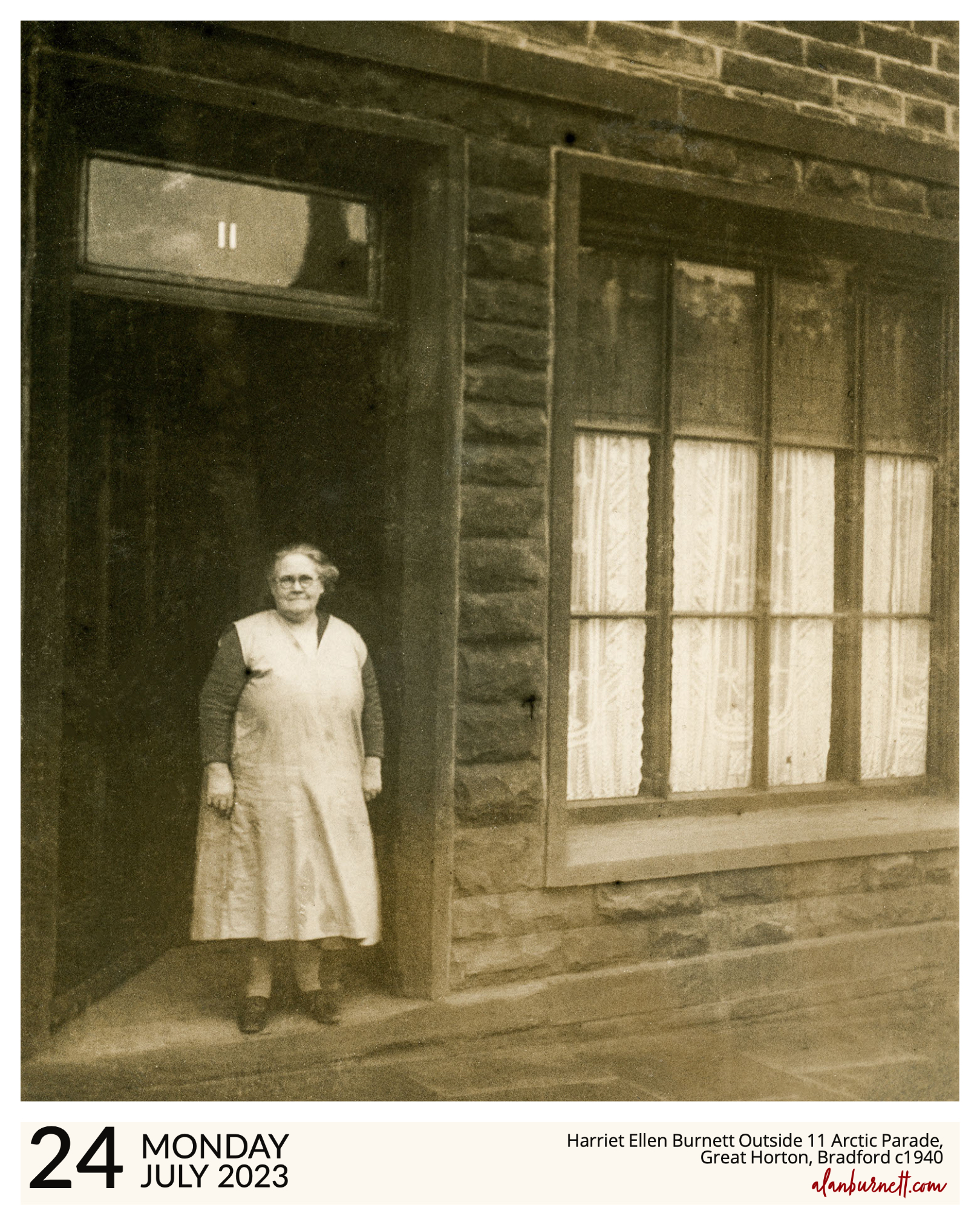All I did was to ask AI to design a typeface featuring colourful wild flowers. This is what it came up with.Our artificial intelligence week not only continues, but gets sillier. “AI, re-imagine me as a Norse God” Personally, I think I look rather fetching!The last of the Artificial Intelligence (AI) series. This is using something called “generative fill” to add to an existing image (in this case, of Upper Edge, Elland) I later asked AI if this was an image of the past or the future – it declined to answer!It’s my brothers birthday today. We are separated by about 4,200 miles but I will be raising a glass in his honour later today. Happy Birthday dear boy.Farming The Wind, High Flatts, Near HuddersfieldMy grandmother, Harriet Ellen Burnett, at the door of her house in Arctic Parade, Great Horton, Bradford. The photograph was probably taken around 1940. The doors and windows of the terraced house seem enormous compared to my grandmother, but her presence is nevertheless indomitable.
