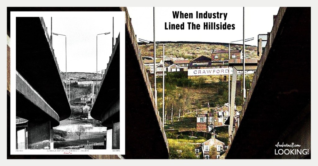 This was taken way back when – when industry still clung to the hillsides of Halifax, when machine tools, along with carpets and toffees provided employment for the town, when the hillsides were treeless, and when washing was optimistically hung out to dry in the smokey breeze.