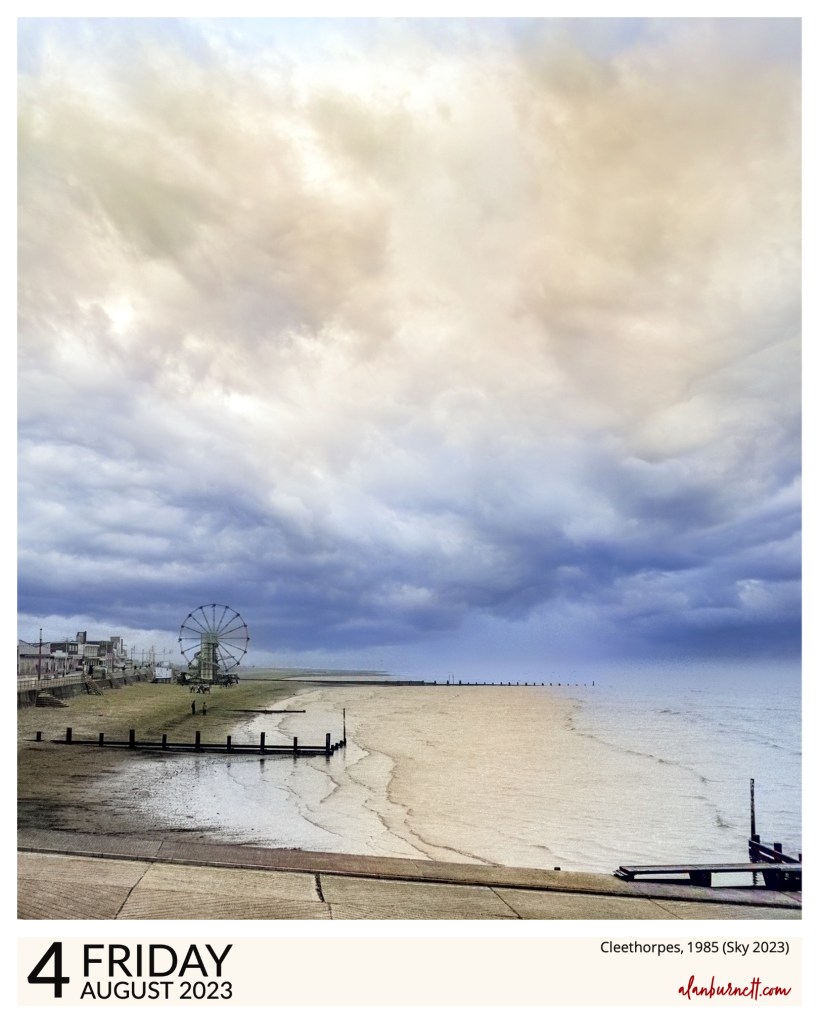 The original photograph was taken back in the mid 1980s on a visit to Cleethorpes. It was a monochrome photograph which fitted well into what was a monochrome decade for me. On the original image, there was a large sky that was doing nothing, so last night I added a new sky. I also added a touch of colour, which fits well into a colourful time of my life.