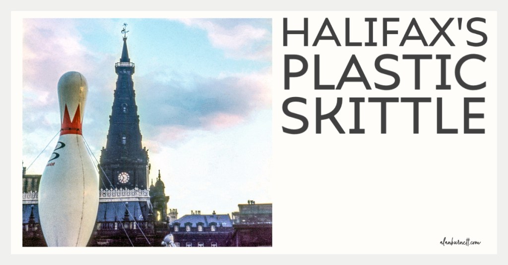 Memory is a great trickster. Ask me for one of my most endearing visual memories of Halifax in the 1960s and 70s and I will tell you about the 14 foot high plastic bowling pin that used to grace the top of the Halifax Bowl at the junction of Broad Street and Orange Street. I might even go on to eulogise the oversized ten-pin – or “plastic skittle” as it was affectionately known – as one of the lasting icons of the town, up there with Mr Wainhouse and his tower, or Mr Burdock and his way. But, I would be wrong: the plastic pin had only a fleeting existence and was in place for just one year, before being unceremoniously taken down and carried away to obscurity. During its short life, however, it managed to create a monumental storm. One local Councillor called it “a monstrosity, empty and shallow, representing everything that was not wanted for Halifax”. Thousands of Halifax people disagreed and signed a petition to save it, and even the Prime Minister, Sir Alec Douglas-Home, was called on to intervene.