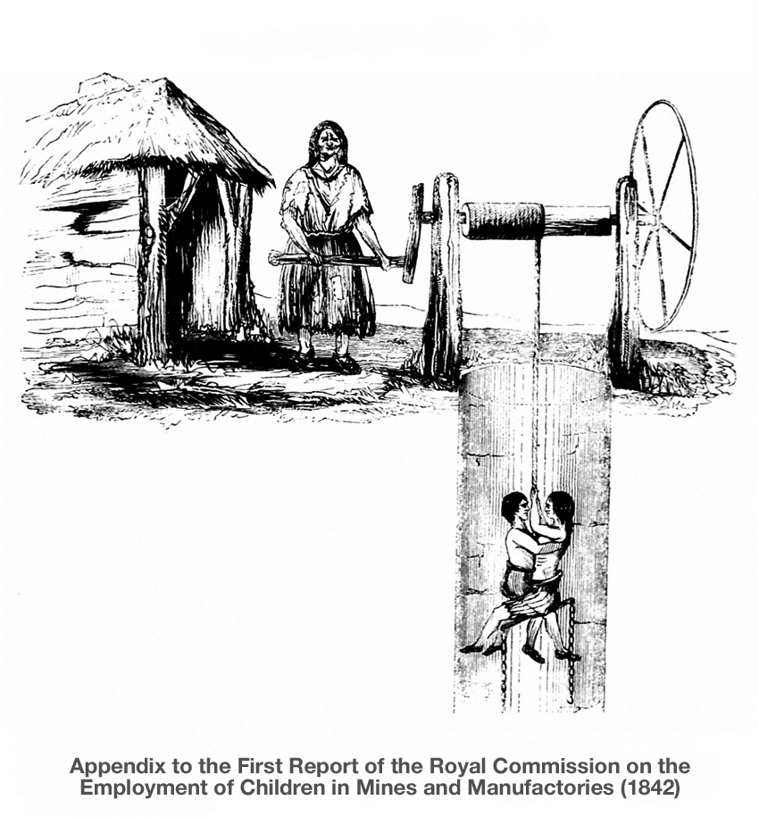 I came across an illustration the other day of two children being hauled up a mineshaft. After a little research I discovered that not only was the illustration a “real” record of two actual named children, but even more surprisingly, it was based on the practices at a coal mine just a few miles away from where I live in West Yorkshire. The illustration was produced as part of the Royal Commission on the Employment of Children in Mines and Manufactories which, in 1842, took evidence from workers and employers in the Halifax area.