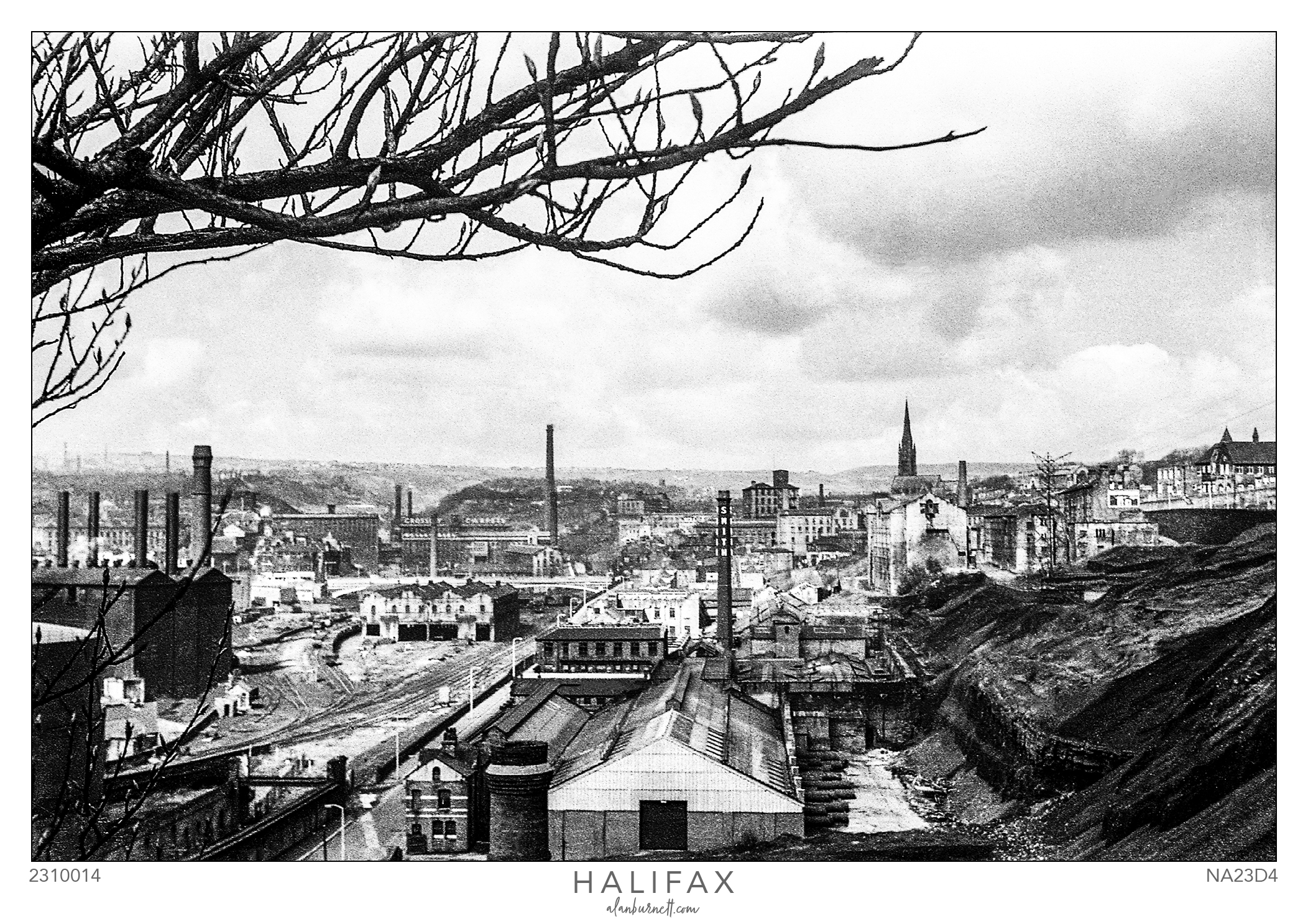 A photo of mine from the late 1960s, taken from Godley Branch Road looking down on Halifax. I suspect I incorporated the tree because such things were so rare up Beacon Hill in those days. You wouldn’t be able to take a similar shot today – you can’t see the town for the trees!