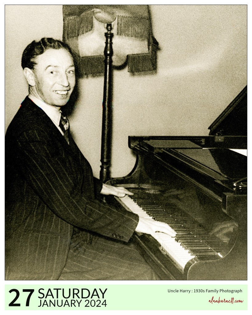 Everyone should have an Uncle Harry in their family. He performed in seaside concert parties in the 1920s and at holiday caravan parks in the 1950s. He played the Working Men’s Clubs, grew his hair fashionably long in the 1960s and wore platform shoes to make him look taller. He was frowned upon by the rest of the family, but he had style in bucket-fulls and left memories as grand as any piano.