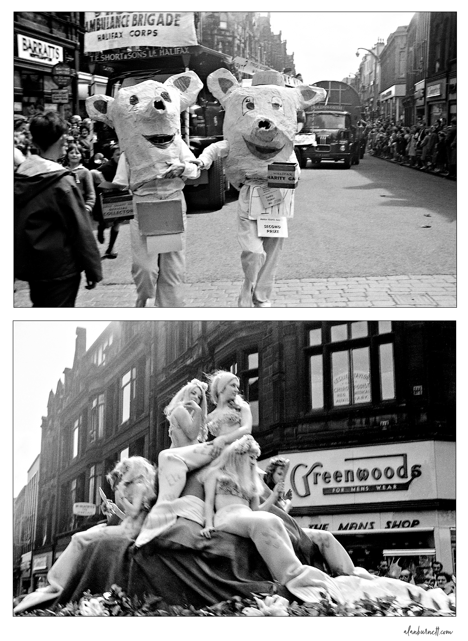 These photos from the 1967 Halifax Charity Gala parade provide an insight not only into the street scenery of the time – there’s Greenwoods, Barratts, and M&S in the right place – but also the way of life of the time. And let’s not forget Pinky and Perky! 2/3