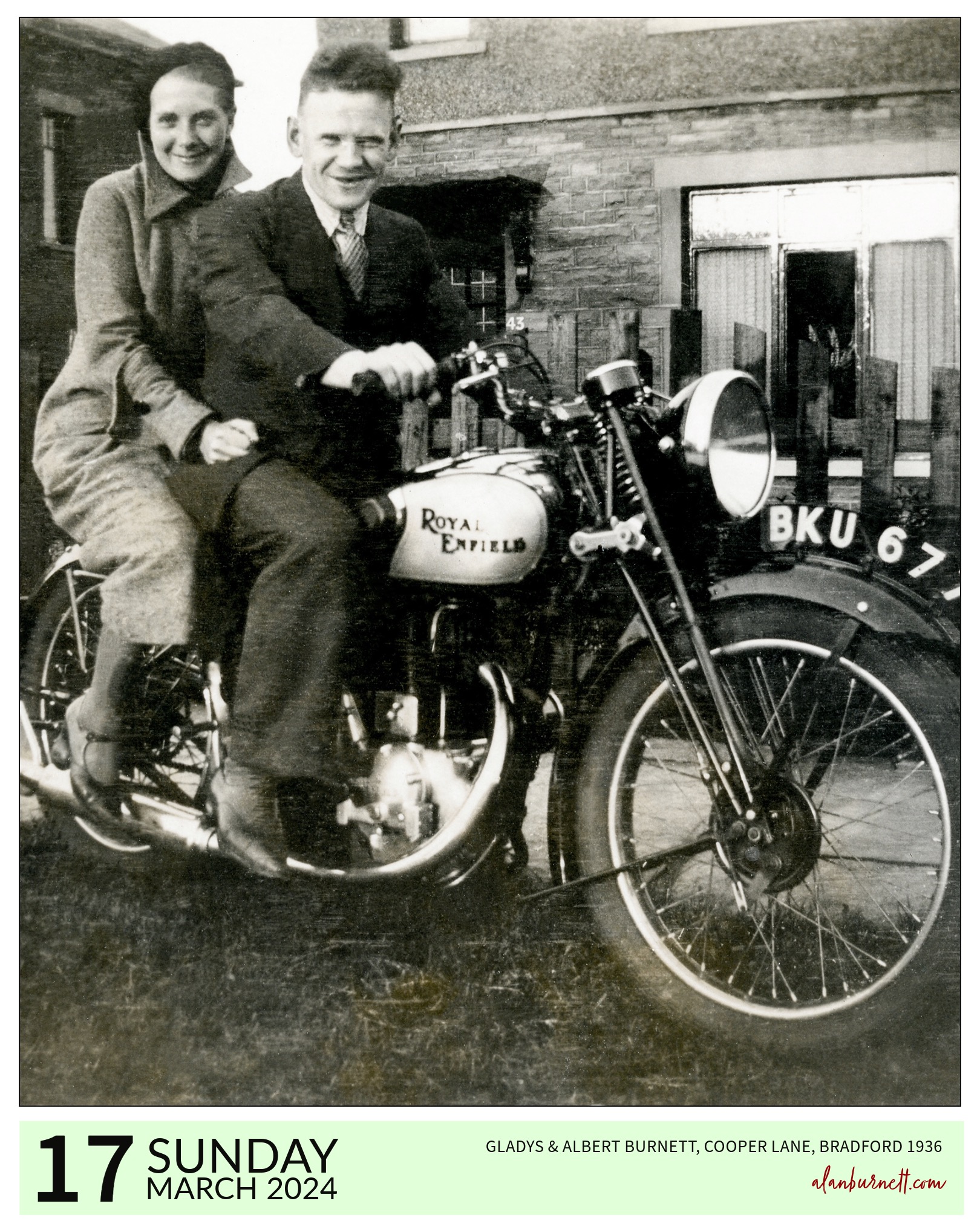 My parents, like so many young couples in the 1930s, were great motorbike enthusiasts. Motorbikes gave them the opportunity to discover the country in a way that had not been available to earlier generations. Here they are, proudly astride their Royal Enfield, in the late 1930s.