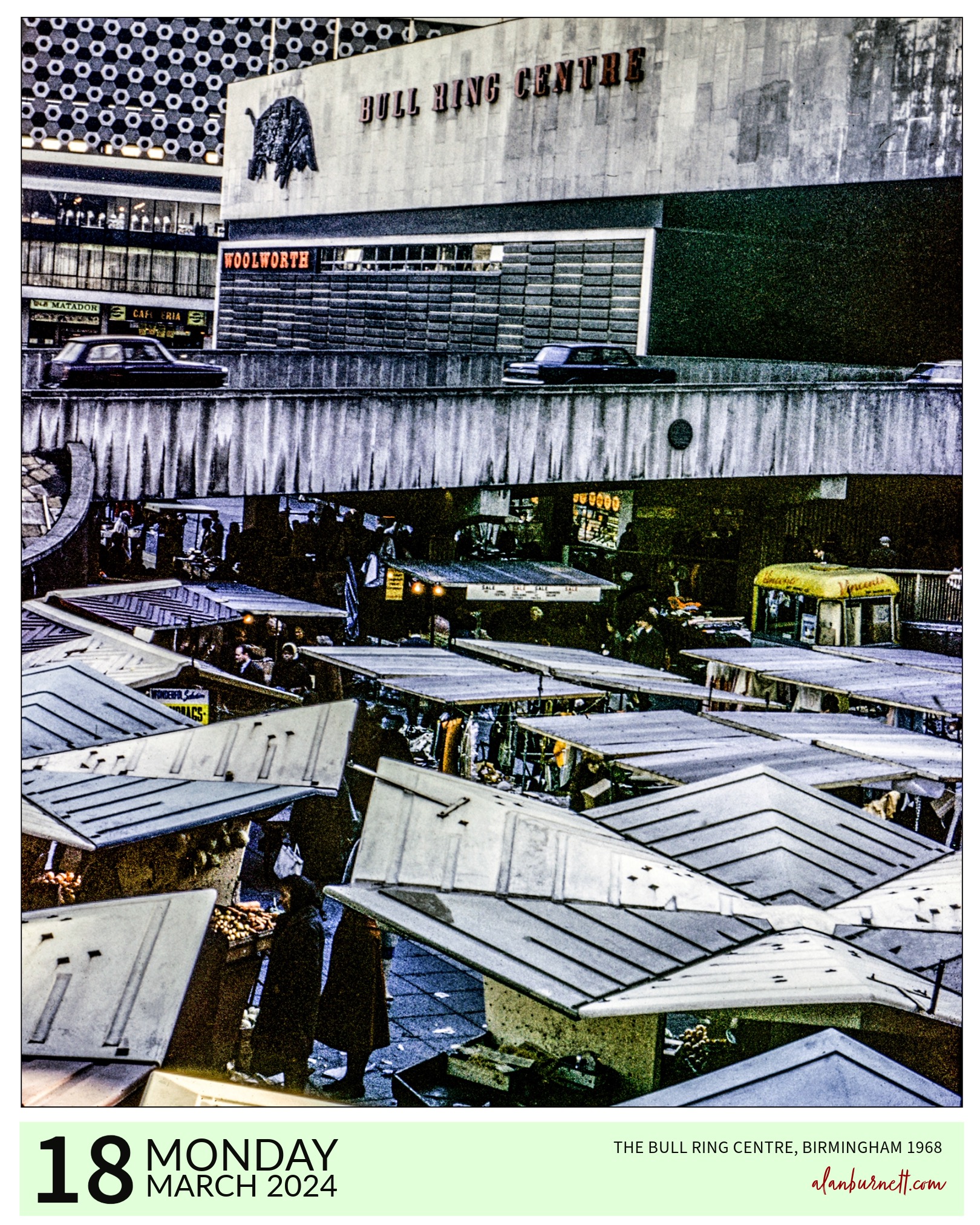 I spent a year in Birmingham – 1968/69 – and this is one of my photos from that time. What strikes me is the lengths the architects have gone to in order to achieve straight lines and sharp angles only to have the look compromised by the random curves of concrete staining.