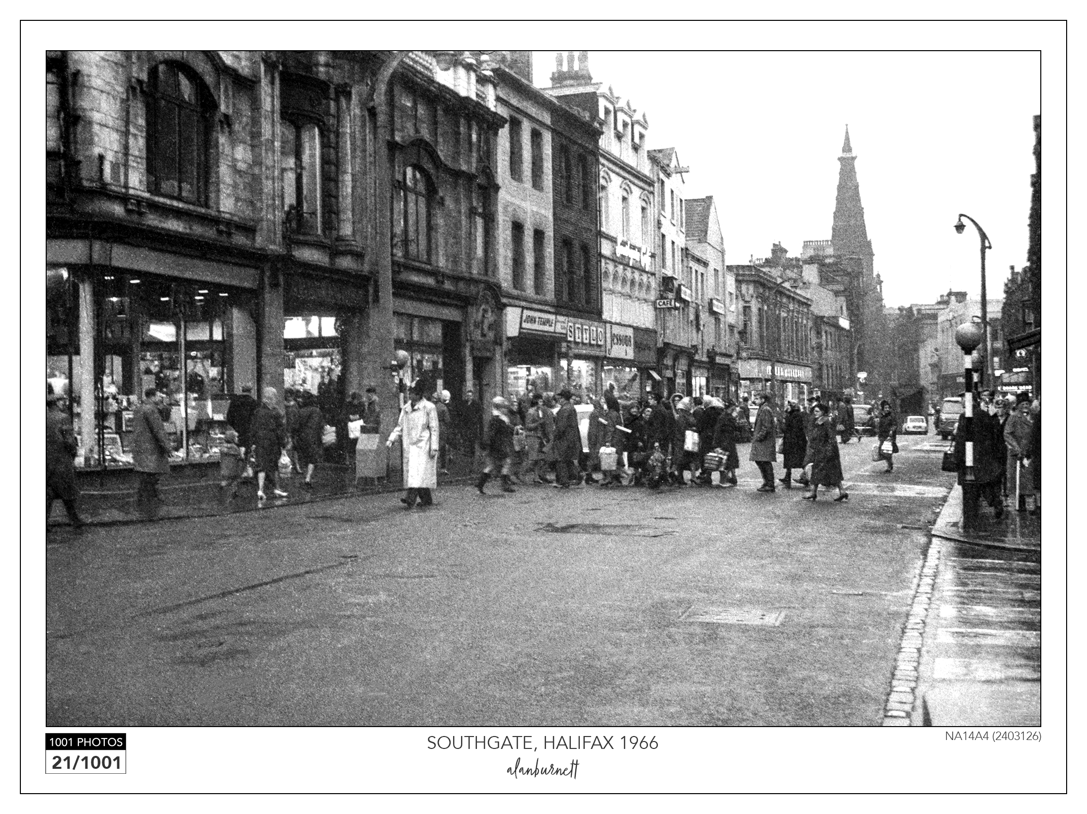 I can’t pretend that this is a good photo, but it is dripping with local nostalgia. It speaks of a time when policemen wore white raincoats and shoppers wore plastic rain hoods, when Marks was up town and the Boars Head was down below the market …. and the town hall was sooty!