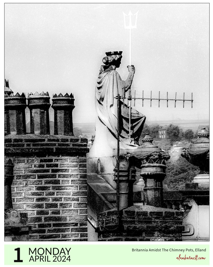 There are some scenes I return to again and again: photographs I have been taking for fifty years. One such is the statue of Britannia which overlooks Elland Bridge from her elevated position on the roof of the former premises of the Halifax and Huddersfield Banking Company. Sometimes I try and capture her in an elegant pose, flanked by the pilasters, columns and pediments of the frontage of what is now a beautifully restored building. At other times I sneak up on her and catch her off guard, amid the tv aerials and chimney pots.