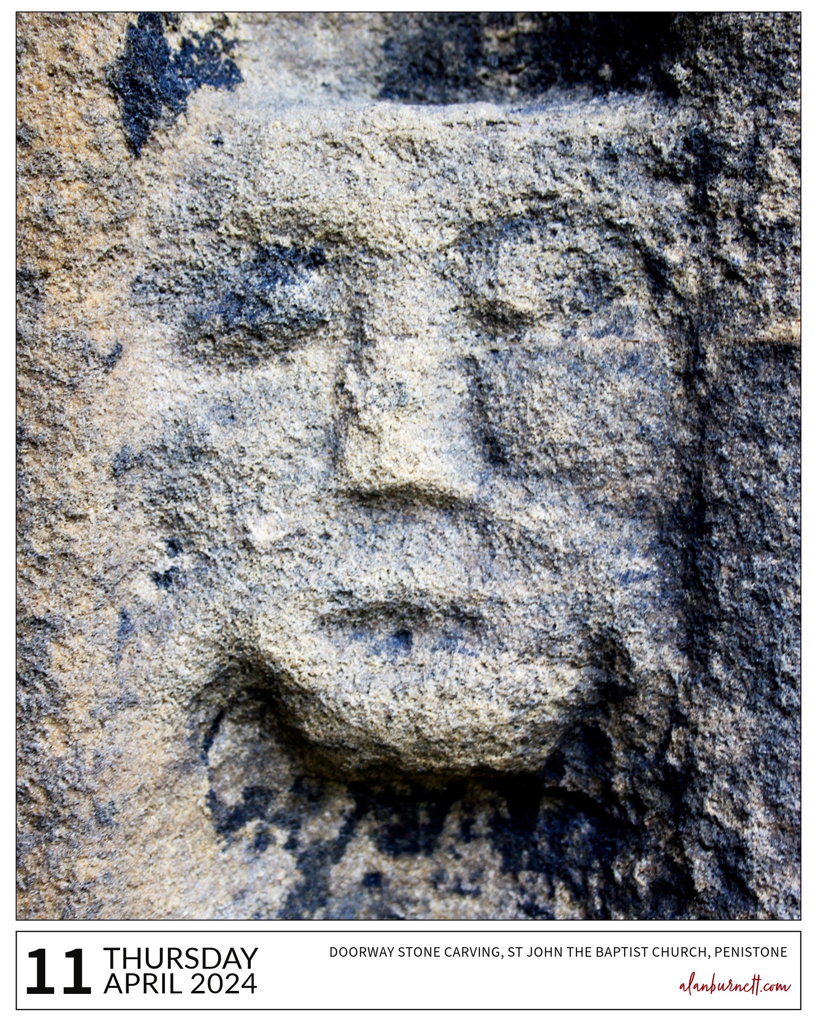 This stone face looks out at people who enter St John the Baptist Church in Penistone. He, or could it be she, has seen so much: joy, sorrow, hopes, fears. Besieged by the Yorkshire wind and rain they remain watchful, perhaps waiting … but for what?