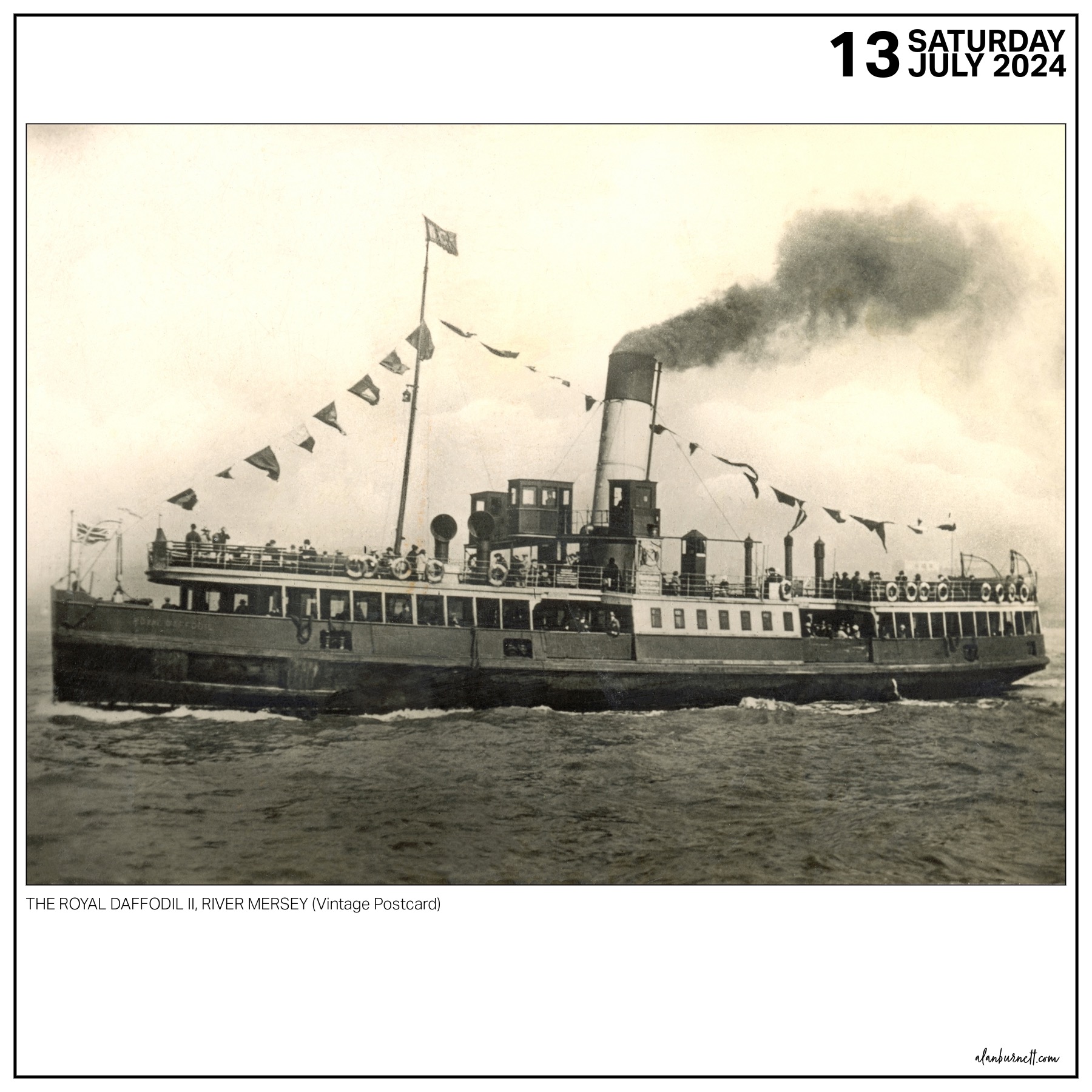 When I was young, back in the early 1950s, our family’s annual seaside holiday would alternate between Bridlington on the east coast and New Brighton on the west. On those years we headed west, our journey would involve a train to Liverpool and then a ferry across the Mersey to our seaside destination. Sorting through some old family papers I found this postcard of one of the Mersey ferries from that era, a postcard I probably bought on one of those journeys.