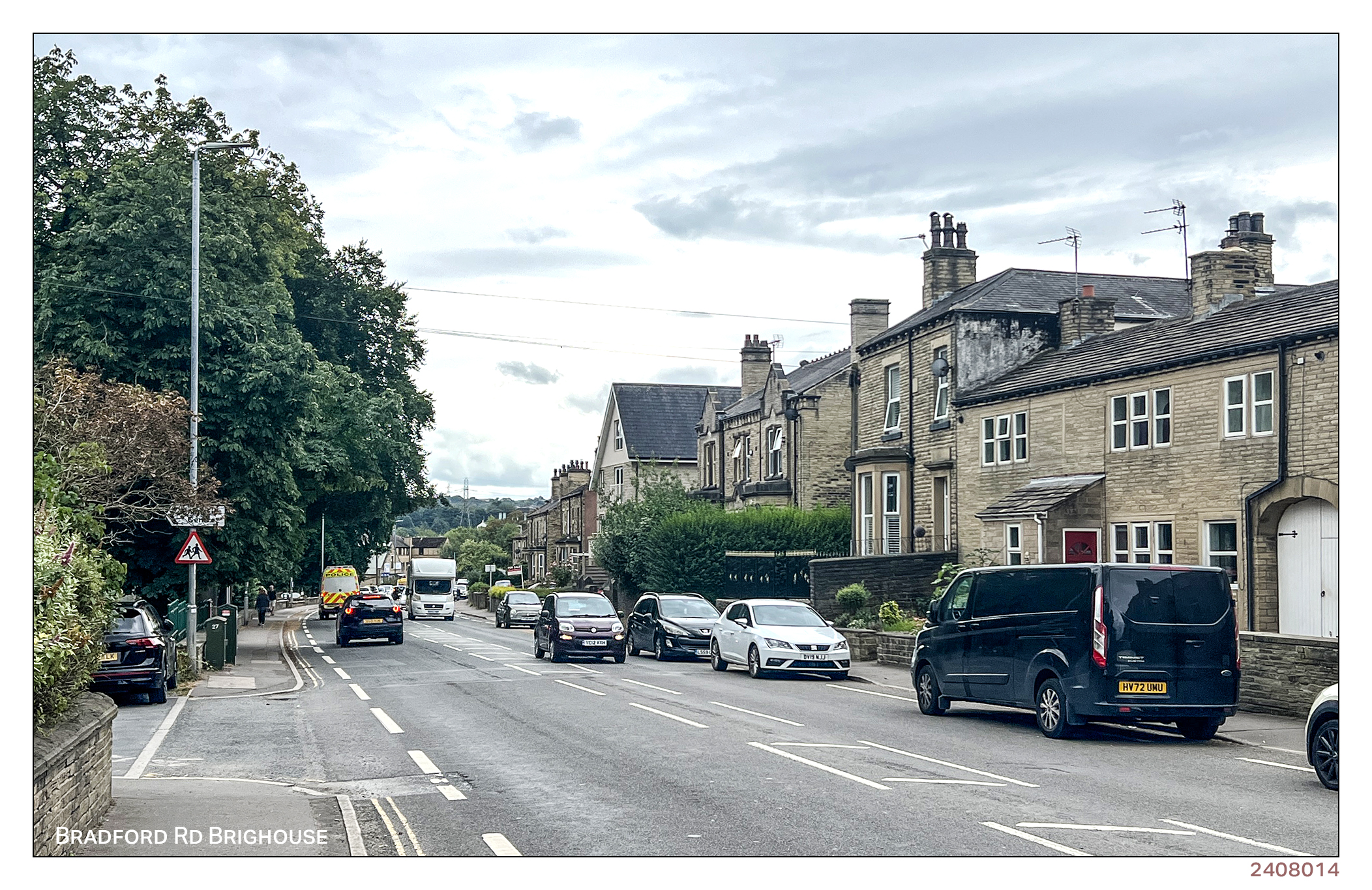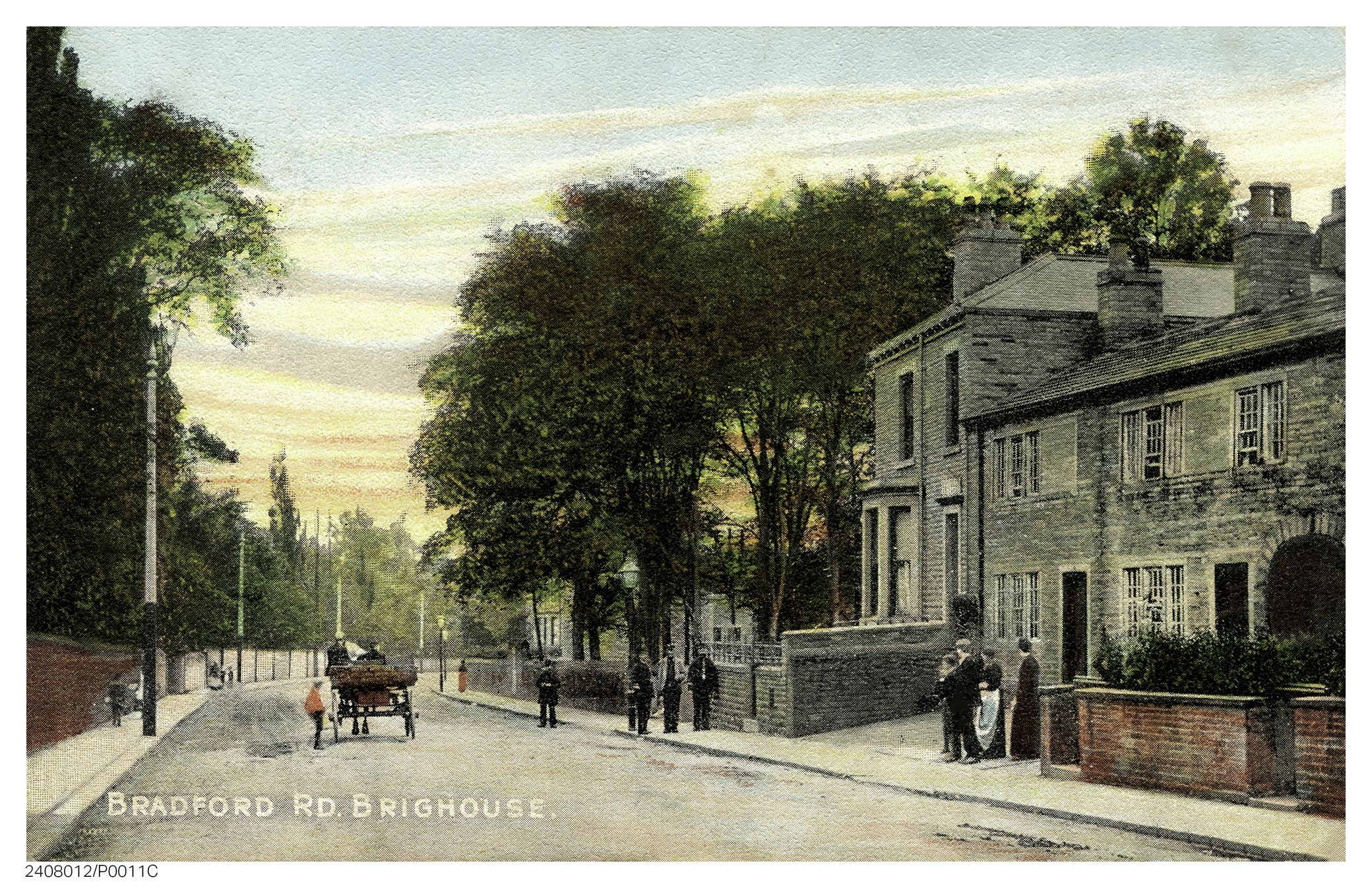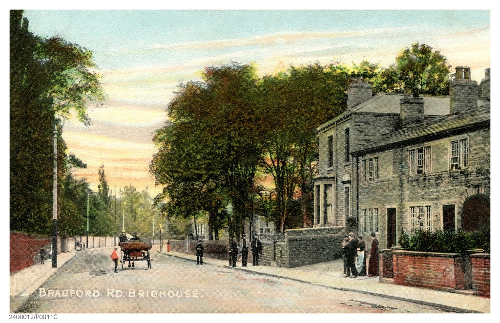 1905 Postcard Of Bradford Road, Brighouse : Dear Dorothy, It is only about three week off Easter now. Do you know you forgot to put a stamp on the postcard you sent me and I had to pay a penny for it. From Walter. (It is interesting to note that whilst this stretch of Bradford Road has not changed all that much over the last 120 years, the cost of putting insufficient postage on a letter or card has!)