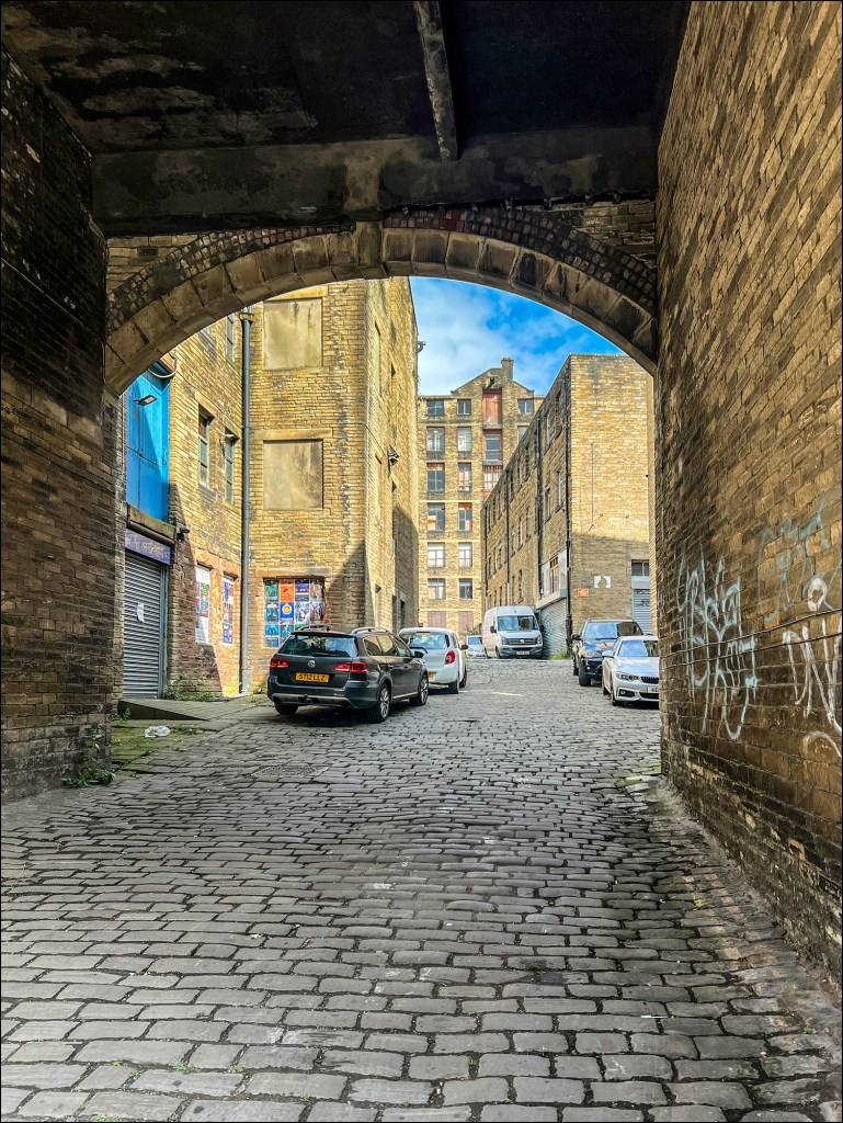Today’s scene started life as an overcrowded and somewhat over-coloured back street off Thornton Road in Bradford. Post-messing, I managed to get rid of the cars and tone it down a bit. Artificial intelligence is a wonderful thing, isn’t it?