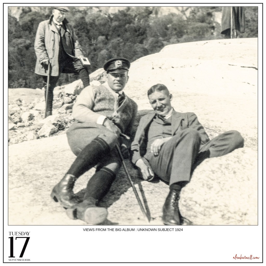 Another of the photos from that “Big Album” I bought a couple of months ago. This, like so many of the photos, is almost like a still from a movie, a plot half resolved, a story waiting to be fully told. Who is the man looking on from the back, what is he holding in his hand? So many questions, so few answers.