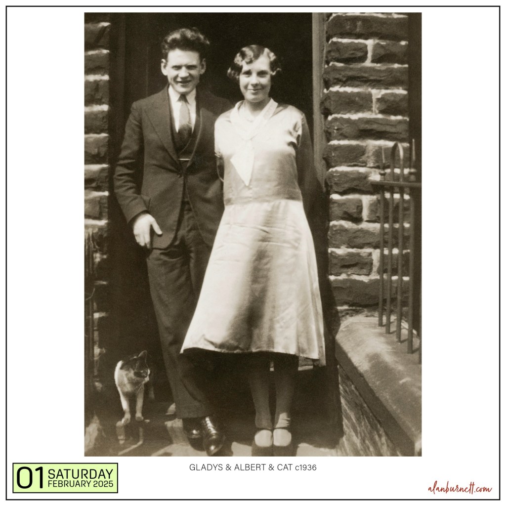 There is, of course, a famous 1971 Hockney painting entitled “Mr and Mrs Clark and Percy”. My photograph predates that by a good 35 years and is entitled “Mr and Mrs Burnett and Cat”. The two main subjects are my parents, and the photo was probably taken in Bradford in about 1936. Coincidentally, Hockney was born only a few streets away from this location and just a year after the photo was taken.