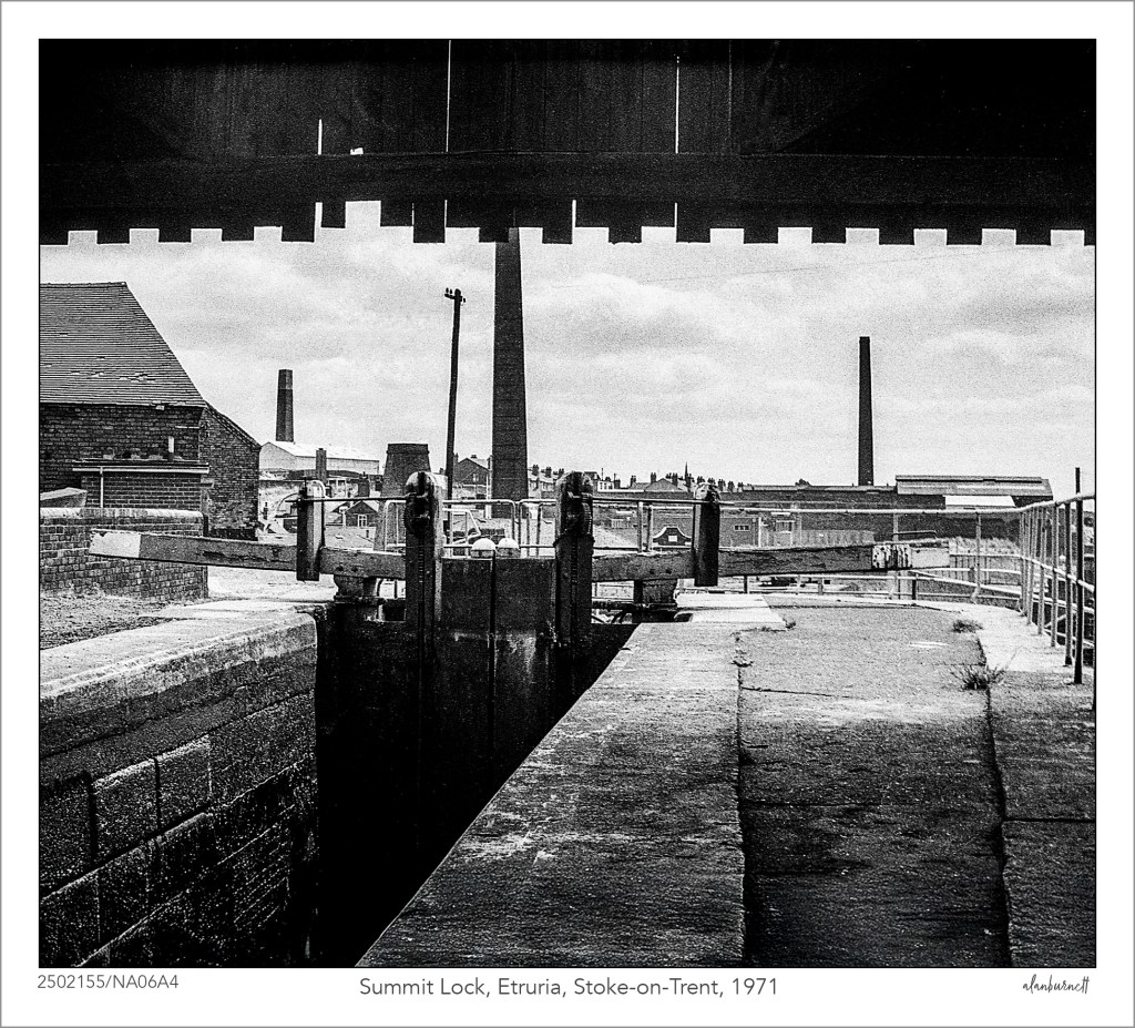 The area was named by Josiah Wedgewood when he built his new pottery works here in 1769 (it was named after the region of Etruria in Italy in an early example of somewhat fanciful marketing). By the early 1970s, the pottery works had been moved, and the old canal was caught in the doldrums between commercial and leisure traffic. It was a sight made for monochrome, and I was lucky to have the opportunity to capture it.