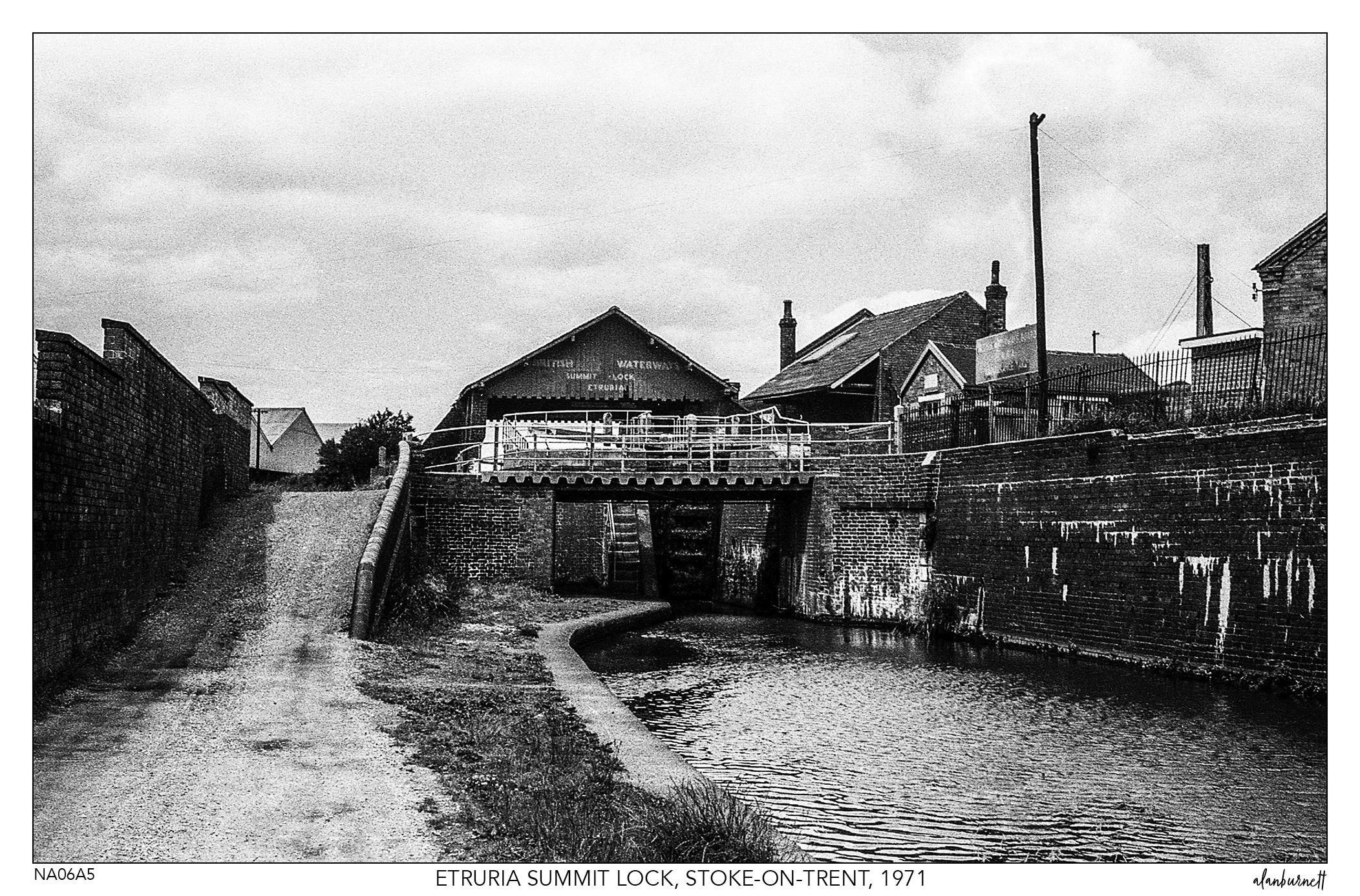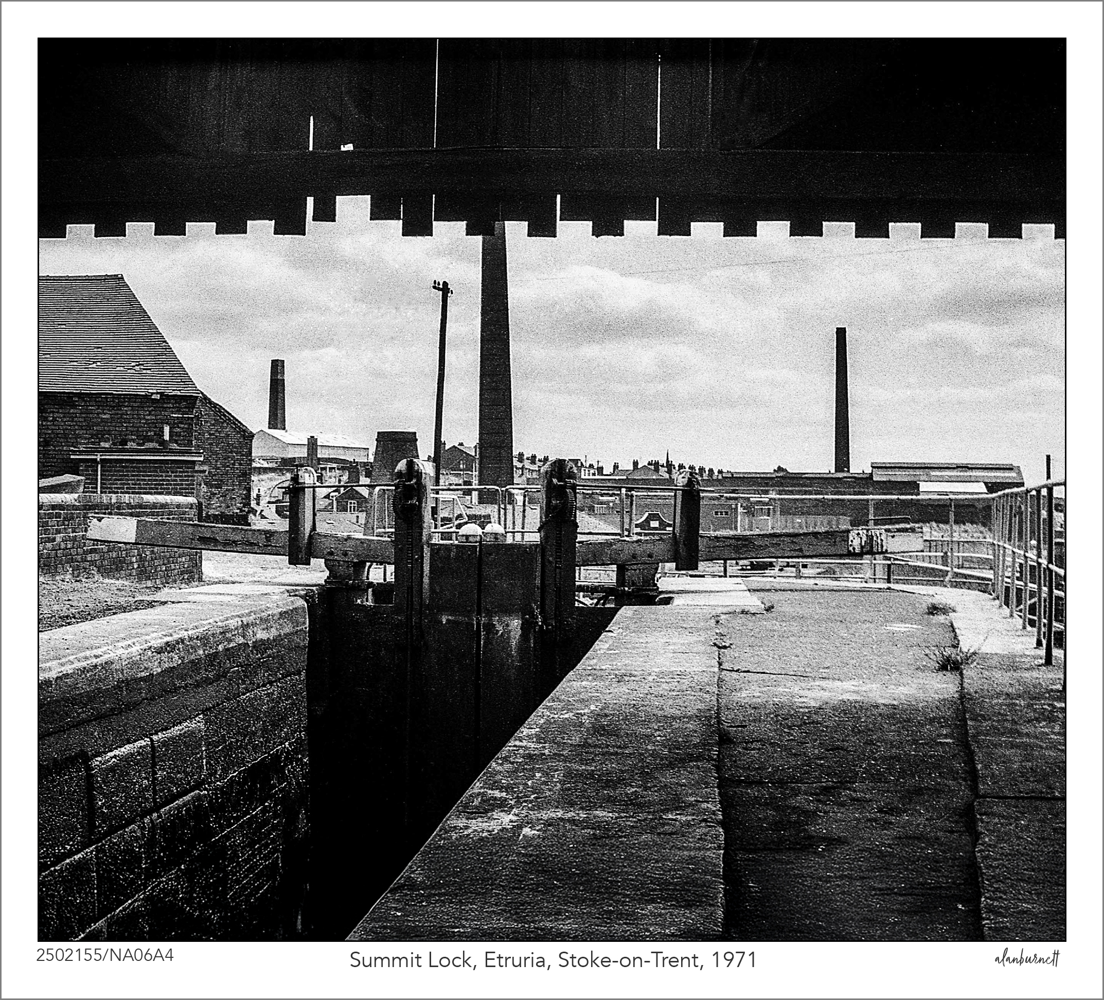The area was named by Josiah Wedgewood when he built his new pottery works here in 1769 (it was named after the region of Etruria in Italy in an early example of somewhat fanciful marketing). By the early 1970s, the pottery works had been moved, and the old canal was caught in the doldrums between commercial and leisure traffic. It was a sight made for monochrome, and I was lucky to have the opportunity to capture it.