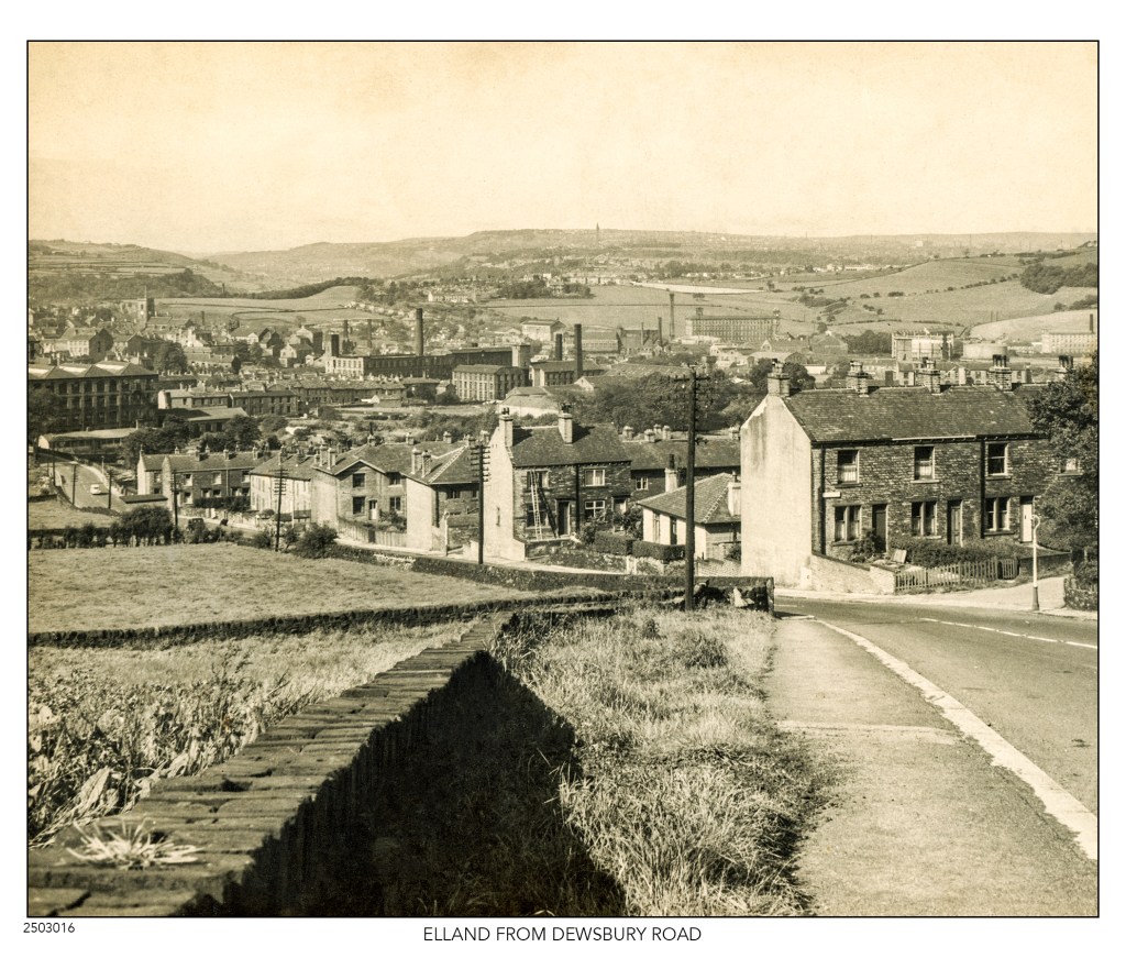 This is not one of my photos: I suspect it was taken by my wife’s uncle. It is a view over Elland from Dewsbury Road as it makes its way up Upper Edge. It must date from the 1960s or early 70s, the period before the construction of Elland by-pass which, today, cuts across this scene. There is something odd about the fields and roads in the background, they don’t seem to fit in with what I know of the area.