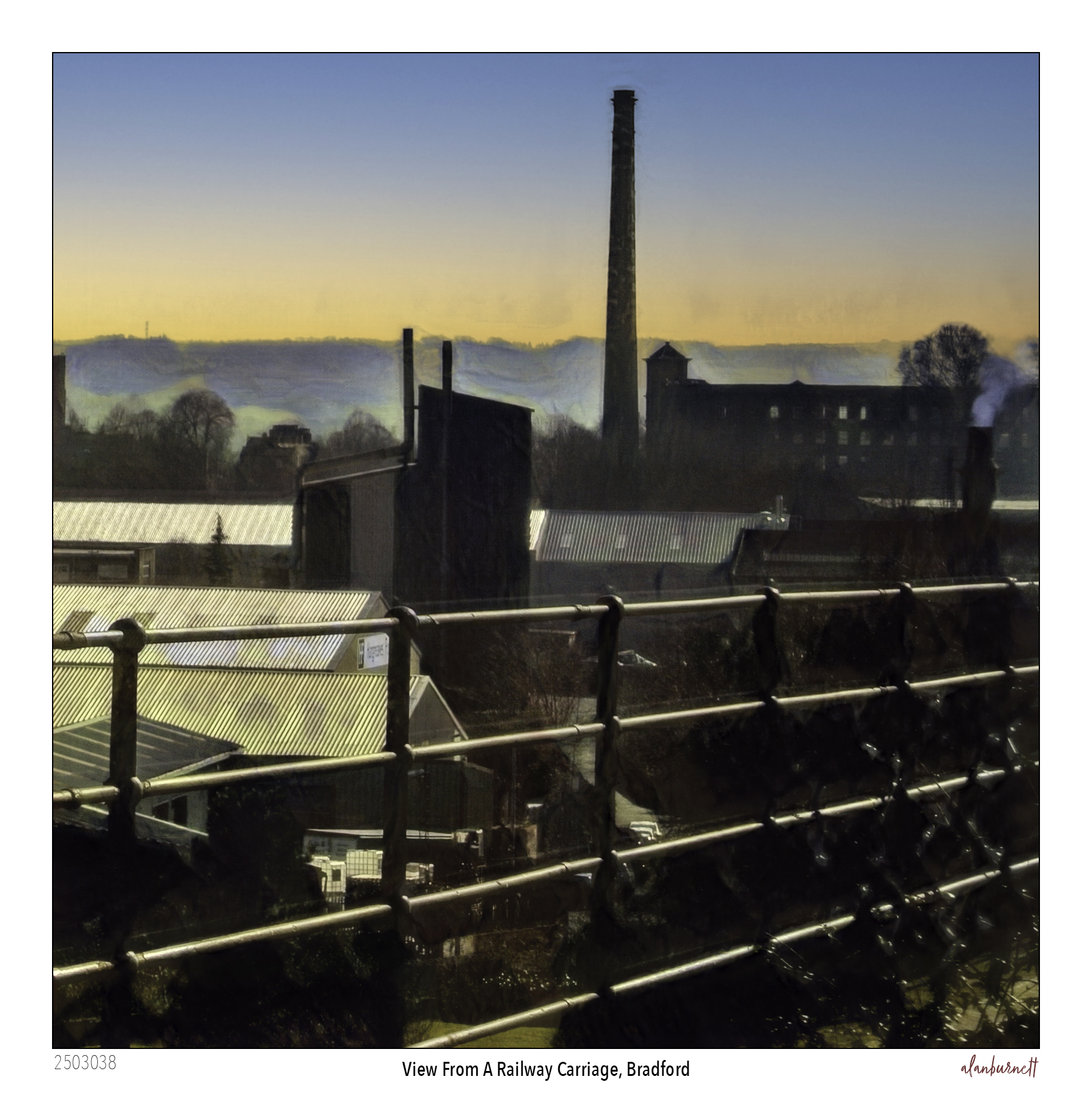 I’m getting old. More and more, I seem to be sitting at my desk messing around with old photographs rather than getting out and about taking new ones. The original of this photo was taken in March 2016 from a train leaving Bradford and heading for Halifax, but this version was created while sitting at my desk last night. I’ve always been attracted to these shapes and colours. But, there again, I’m getting old.