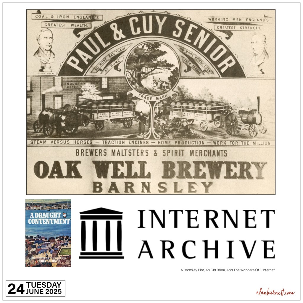 Trying to de-clutter and decide if I could part with a treasured book from my over-full bookshelves. Flicking through it, I find a wonderful old illustration of an advert from Barnsley Brewery (you could write a PhD thesis on the advert alone). Wouldn’t life be easier of my collection of hundreds of books were digitised, I think to myself. Then I discover the Internet Archive and the rest of my day is lost as I lose myself on its over-full digital shelves.