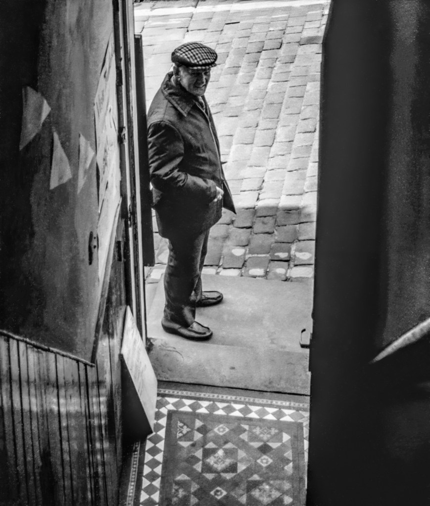 I have spent some time trying to work out where I was when I took this photograph of my father forty or more years ago. My best guess is Haworth – always a favourite destination for family visits – and one of the steep staircases to an upstairs café on the main street. It would have been my father’s birthday today: Happy Birthday Dad.