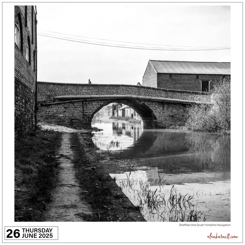 It’s back in the 1980s, and I’m walking along a canal towpath somewhere in South Yorkshire. The bridge creates a monumental frame for a picture of social and economic change. A man looks down, puzzled by someone wanting to capture such a scene. Film was expensive back in those times, but I don’t think this frame was wasted.