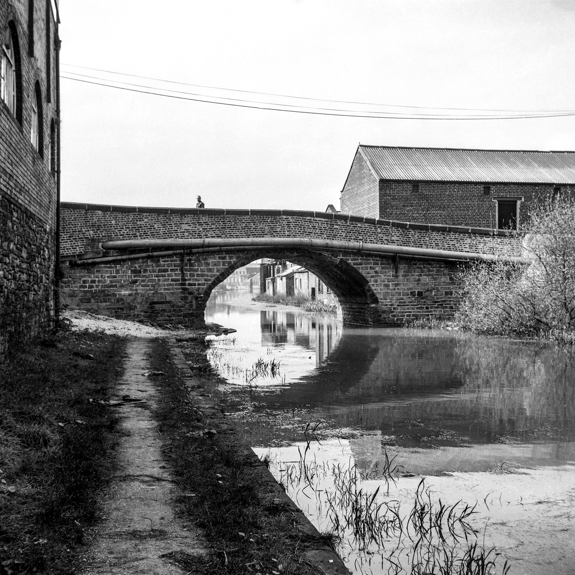It’s back in the 1980s, and I’m walking along a canal towpath somewhere in South Yorkshire. The bridge creates a monumental frame for a picture of social and economic change. A man looks down, puzzled by someone wanting to capture such a scene. Film was expensive back in those times, but I don’t think this frame was wasted.