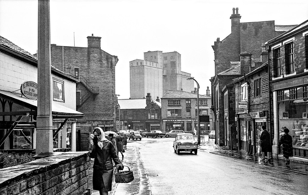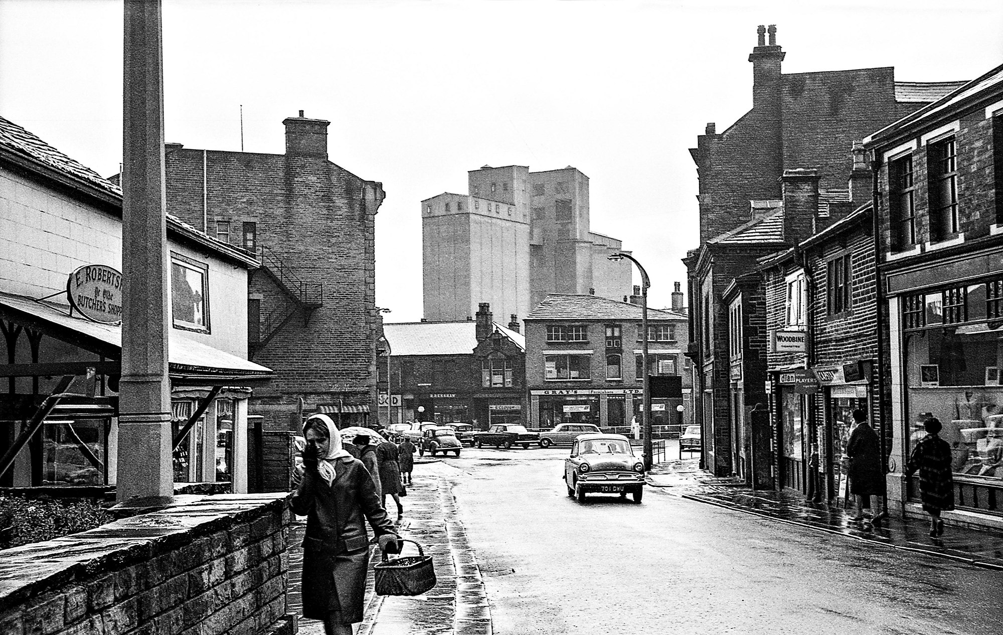 If you are familiar with Brighouse in West Yorkshire, you might recognise the scene depicted in this photo I took fifty-odd years ago. The flour silos are still there (although they are a climbing activity centre now) and so are some of the buildings at the bottom of Briggate. Many of the other buildings have gone, and few people go shopping in a headscarf with a wicker basket anymore!