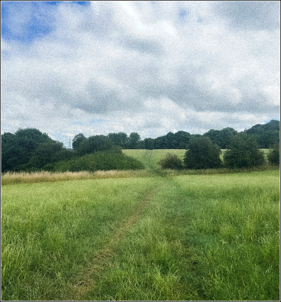 Given the heat and the lack of rain, it’s extraordinary that nature can still produce such greens as this. The scene looks idyllic, and in many ways is, especially if, like me, you are profoundly deaf. For the rest, the noise from the M62 – just behind the line of trees on the left – has to be contended with.