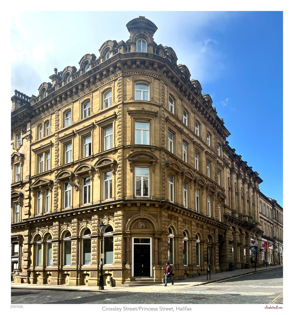 I managed a good walk around Halifax the other day, and I decided to focus on some of the lovely buildings we all walk by each day and never really notice. This week is therefore devoted to “The Buildings Of Halifax,” and I start at the corner of Princess Street and Crossley Street, and the building that was the original headquarters of the Halifax Permanent Benefit Building Society.