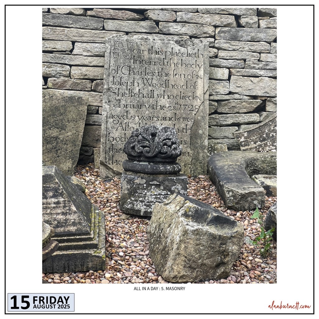 All In A Day: 5. Masonry. “Near this place lieth interred the body of Charles, the son of Joseph Woodhead of Shelfehall who died February 28th 1728 aged 19 years and six weeks” No, it doesn’t!