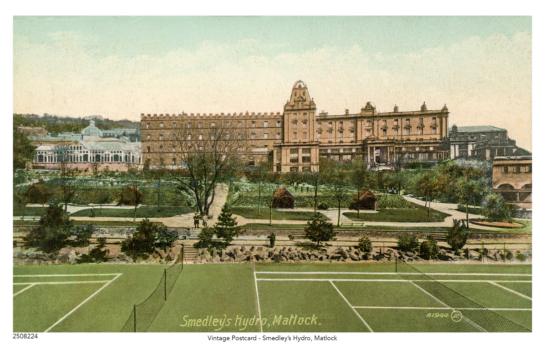 In 1840, Matlock mill-owner John Smedley turned his back on “a life of excessive indulgence” and dedicated himself to religion and hydrotherapy. His original treatment rooms were replaced in the 1880s by this magnificent establishment, which continued to serve as an Hydro until the 1950s when it was converted into offices for Matlock Council. The message on the back of the card says, “the sun is shining, so must get out soon,” which sounds like a better plan than jumping into a cold bath!
