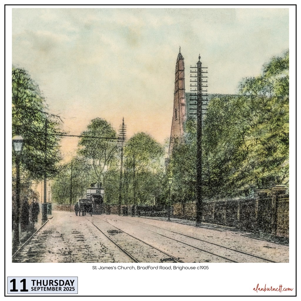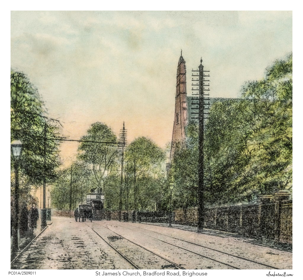 The beautiful Burne-Jones stained glass window I featured the other day were originally to be found in St James’s Church, which stood on Bradford Road in Brighouse (between Tesco and Wellholme Park, where the St James Court flats are today). Not only did the church feature windows by Burne-Jones but also Ford Madox Brown and Dante Gabriel Rossetti: a virtual treasure house of art. What a loss to the town.