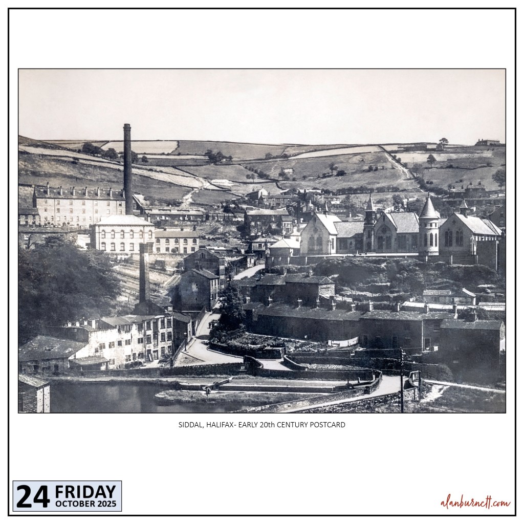 Like so many pictures of these parts from a century or more ago, much has changed in this view of Siddal near Halifax from an old picture postcard. So many of the buildings – the houses, factories, and schools – have gone, and the canal has long since been abandoned. The backdrop remains relatively unchanged, however, and the fields still stretch to reach the sky.