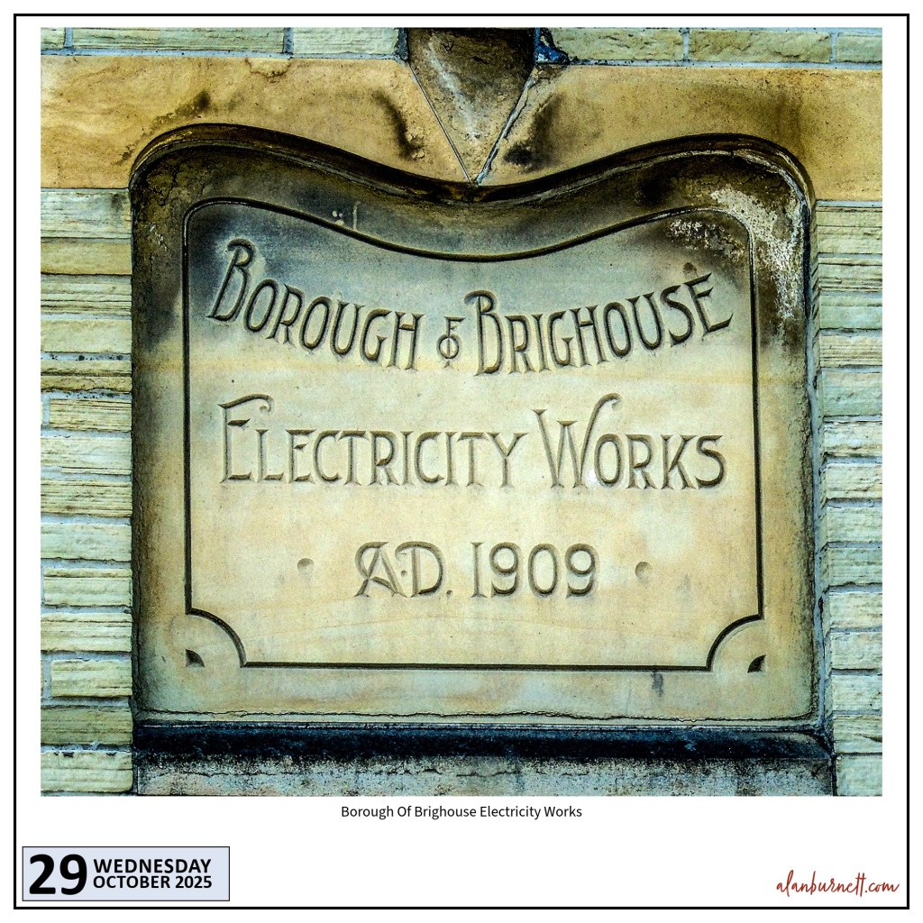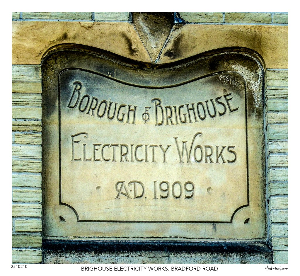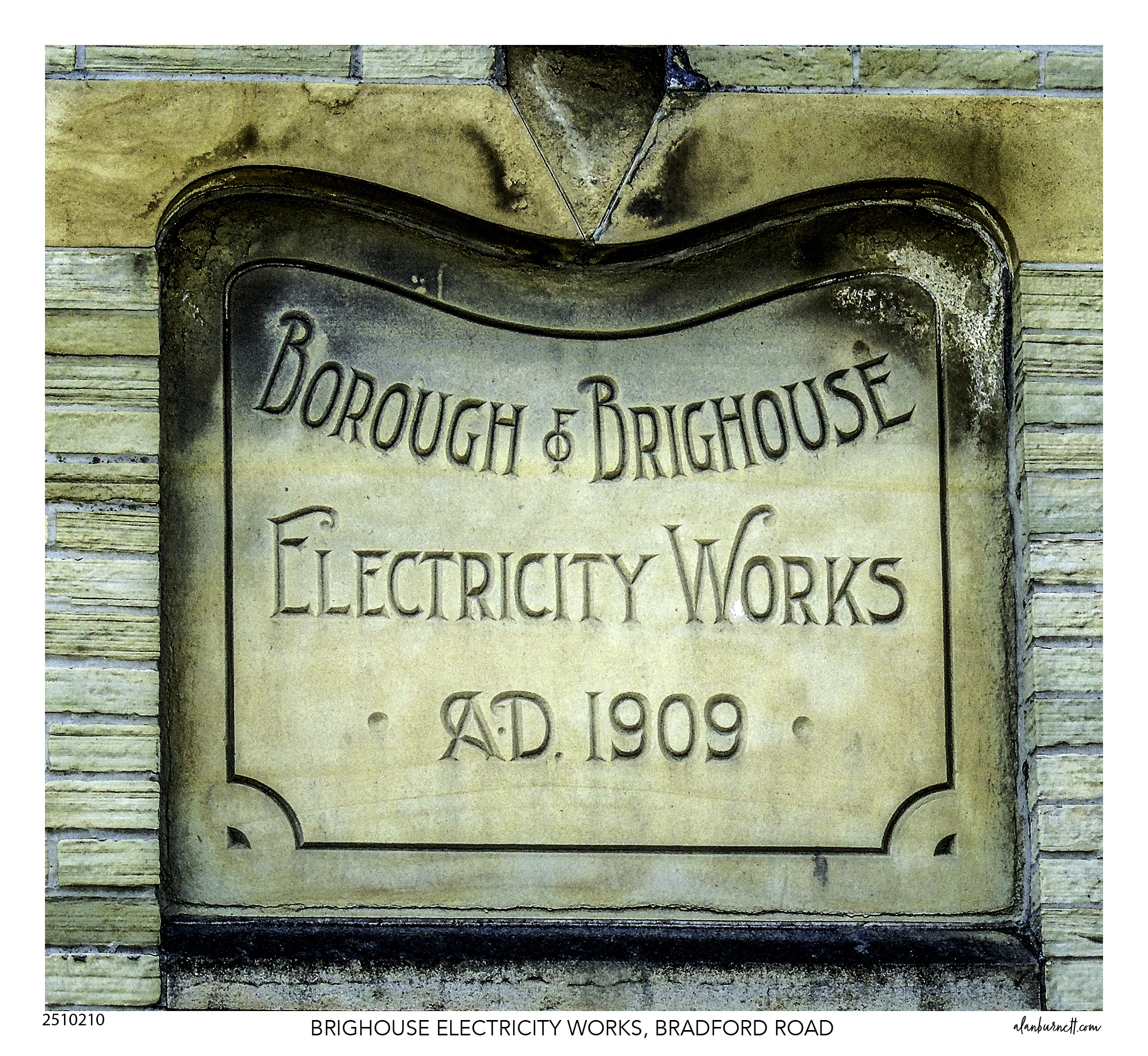 Built in 1909, Brighouse’s Electricity Works, which is situated on the main Bradford to Huddersfield Road immediately next to the canal, is a functional structure built with a Yorkshire faith in substance over style. The exception is the small stone date plaque, which matches in Art Nouveau elegance anything that can be found on the Paris Métro.